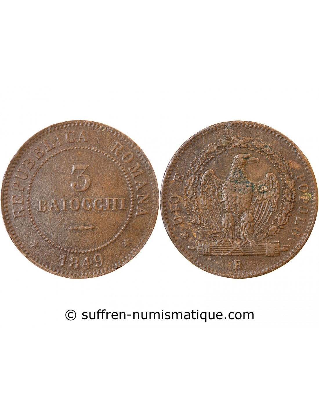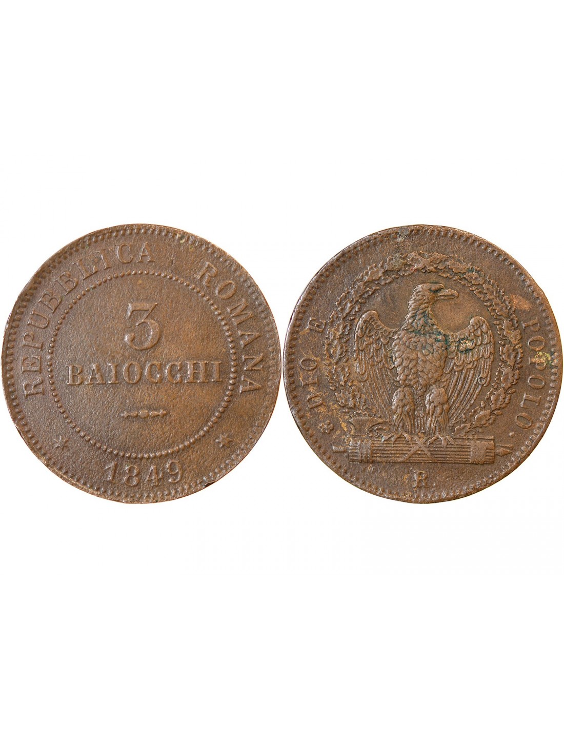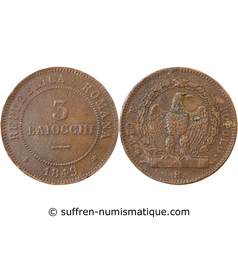 Vatican ITALIE REPUBLIQUE ROMAINE - 3 BAIOCCHI 1849 R ROME