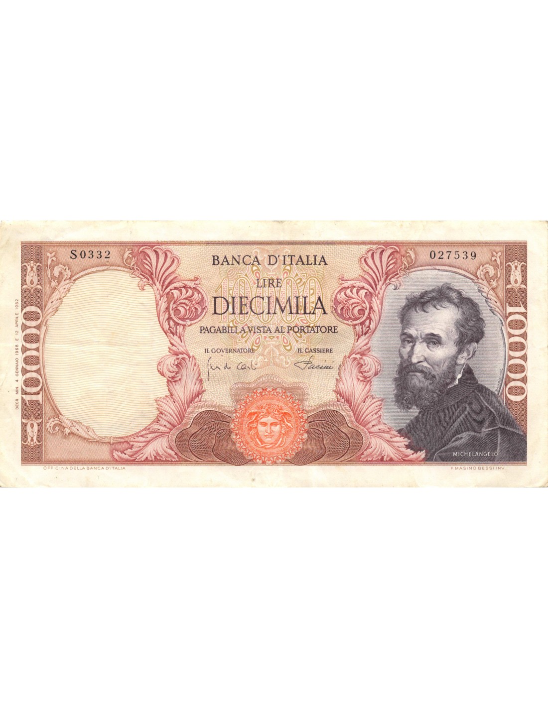 Vendu Europe du Sud Italie Michel-Ange - 10000 Lire 1966 SUFFREN sf_20266 10,00 € épinglages, plis, salissures, taches View