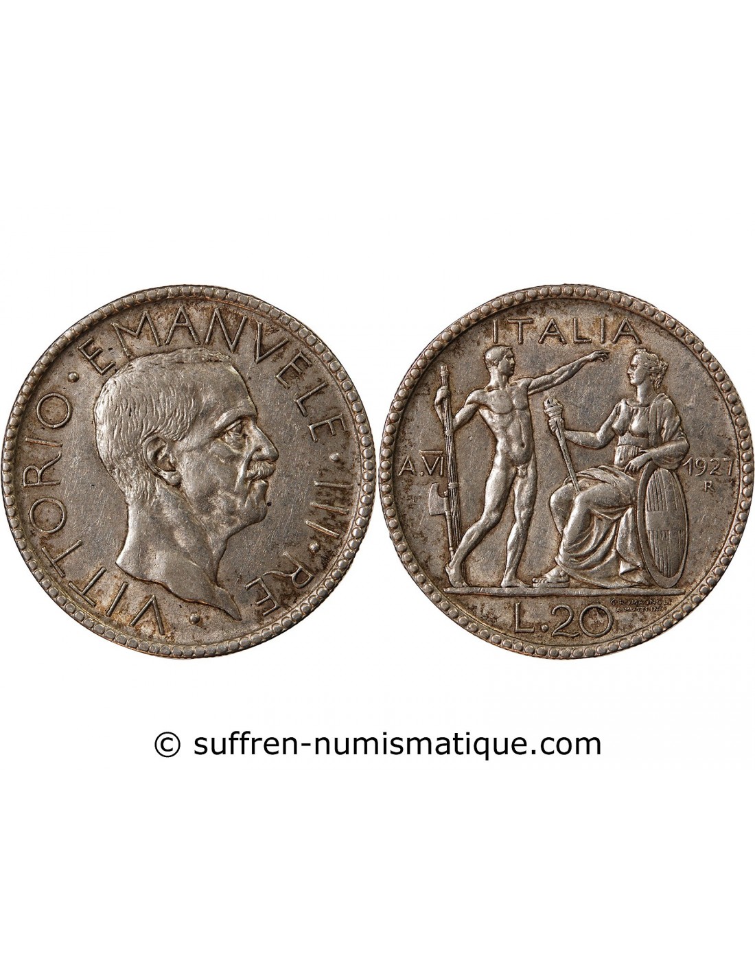 ITALIE, VICTOR EMMANUEL II - 20 LIRE ARGENT 1927 R ROME