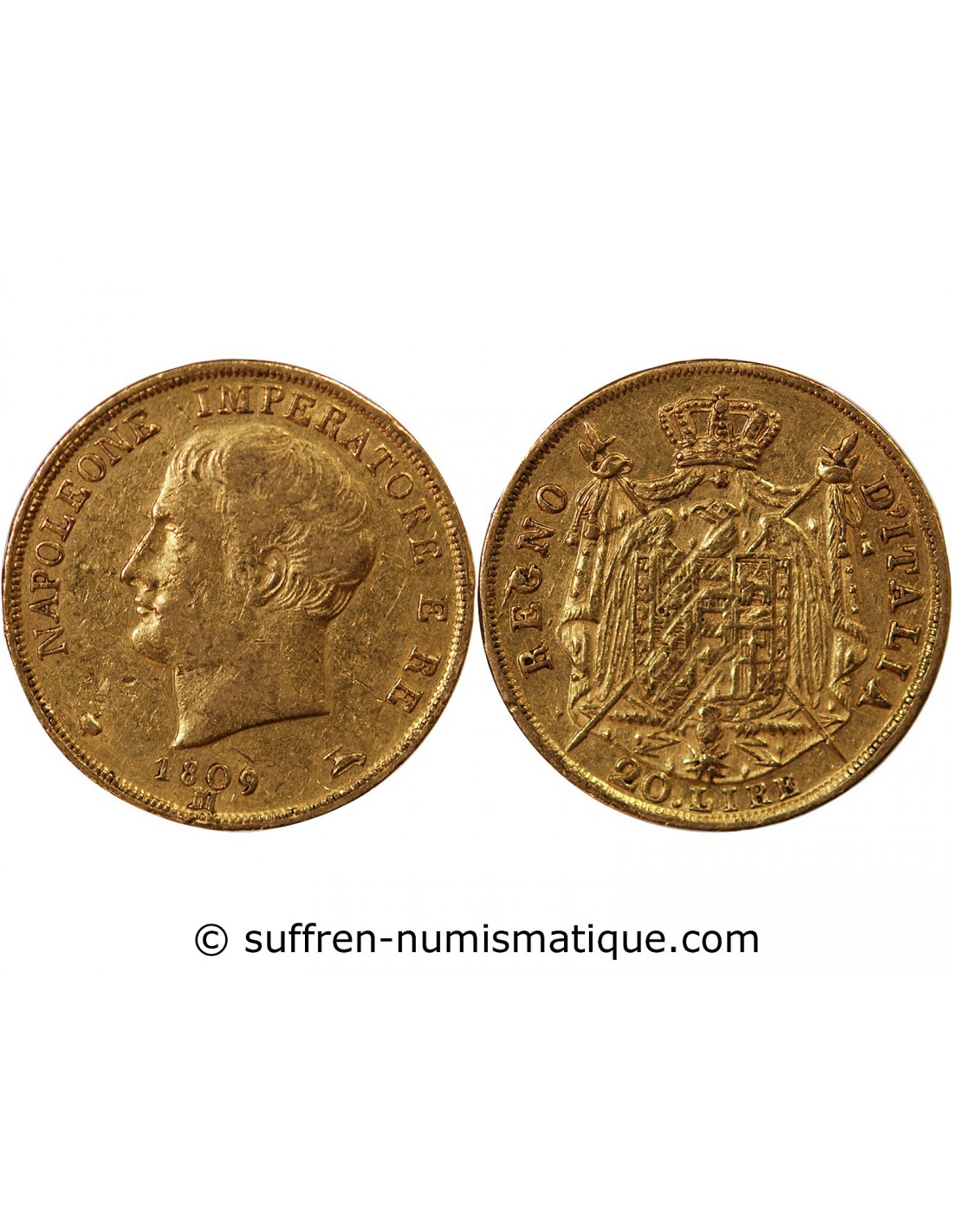 ITALIE, NAPOLEON 1er - 20 LIRE OR 1809 M MILAN