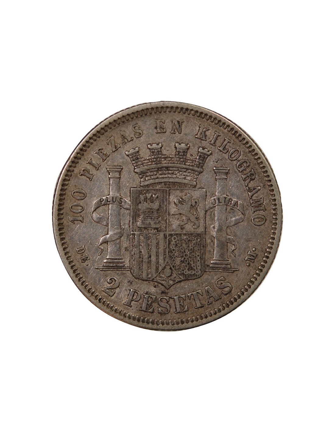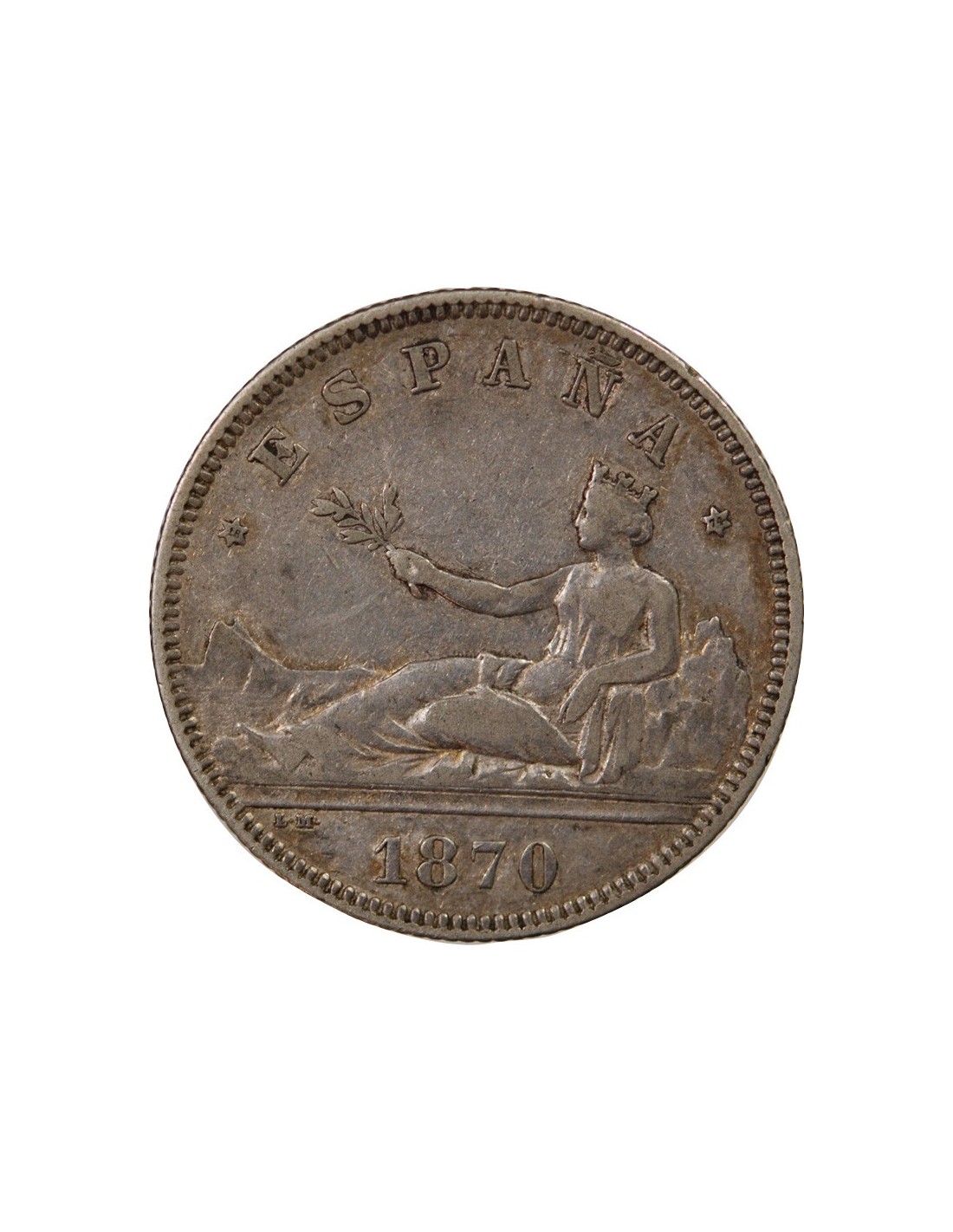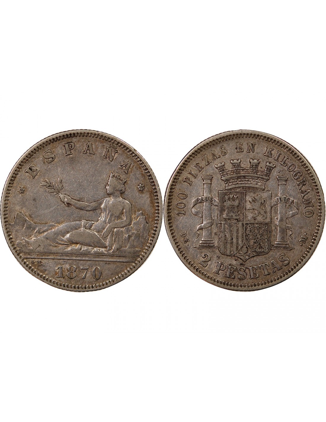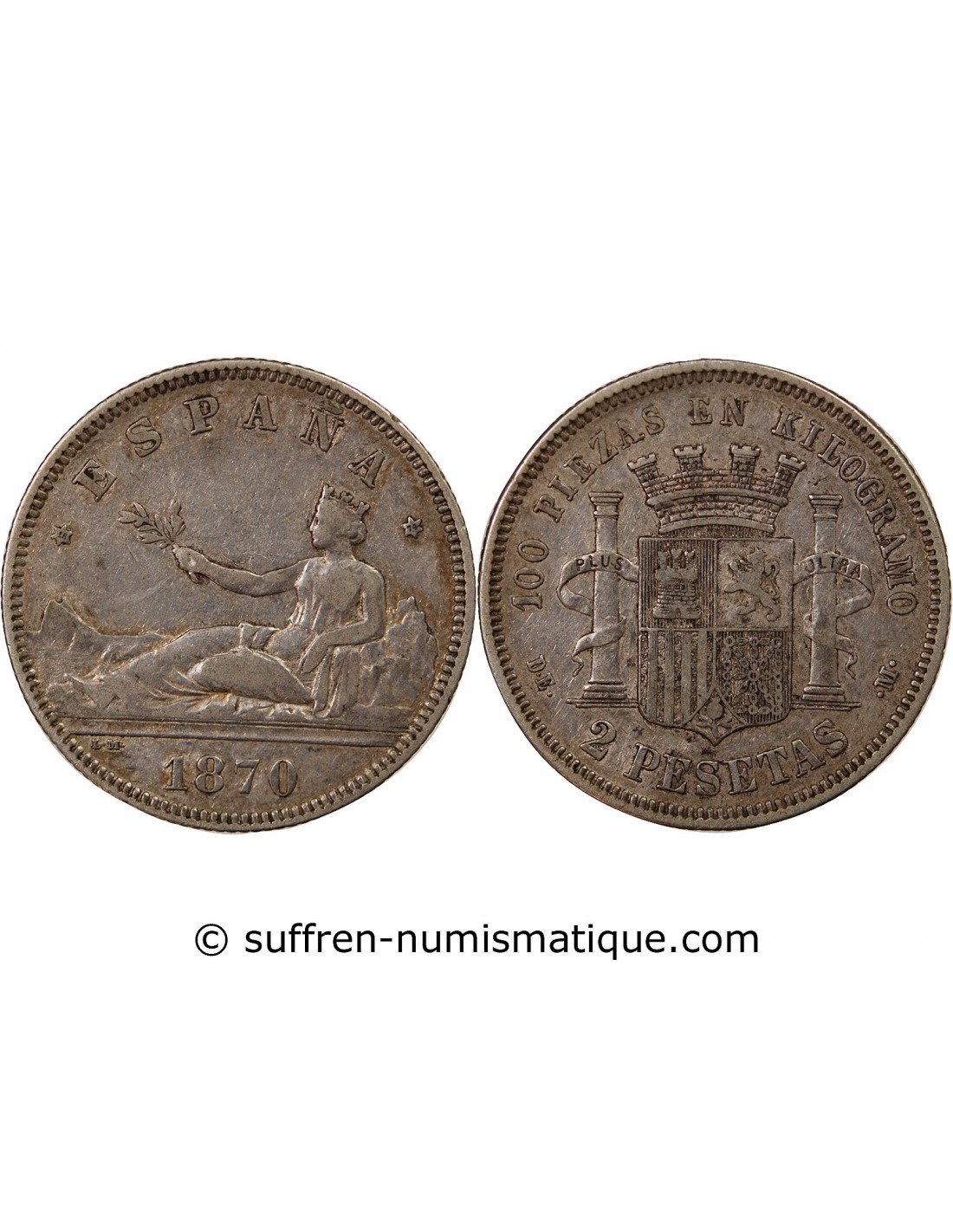 ESPAGNE, GOUVERNEMENT PROVISOIRE - 2 PESETAS ARGENT 1870 DEM
