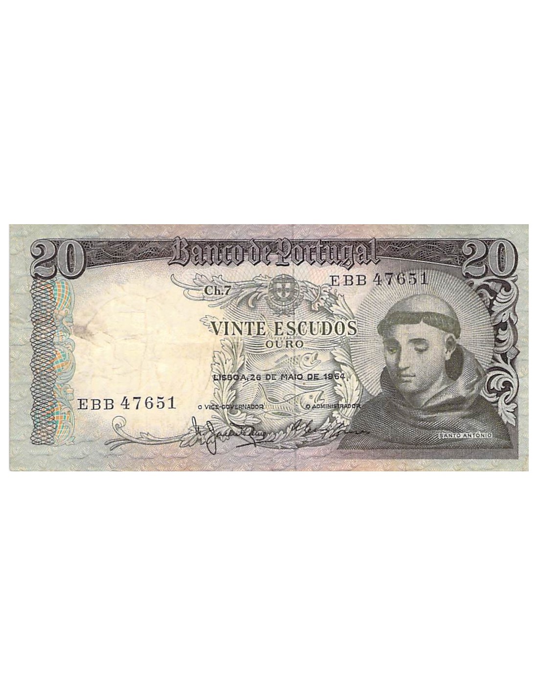 PORTUGAL, SANTO ANTONIO - 20 ESCUDOS 26/05/1964 - TB+