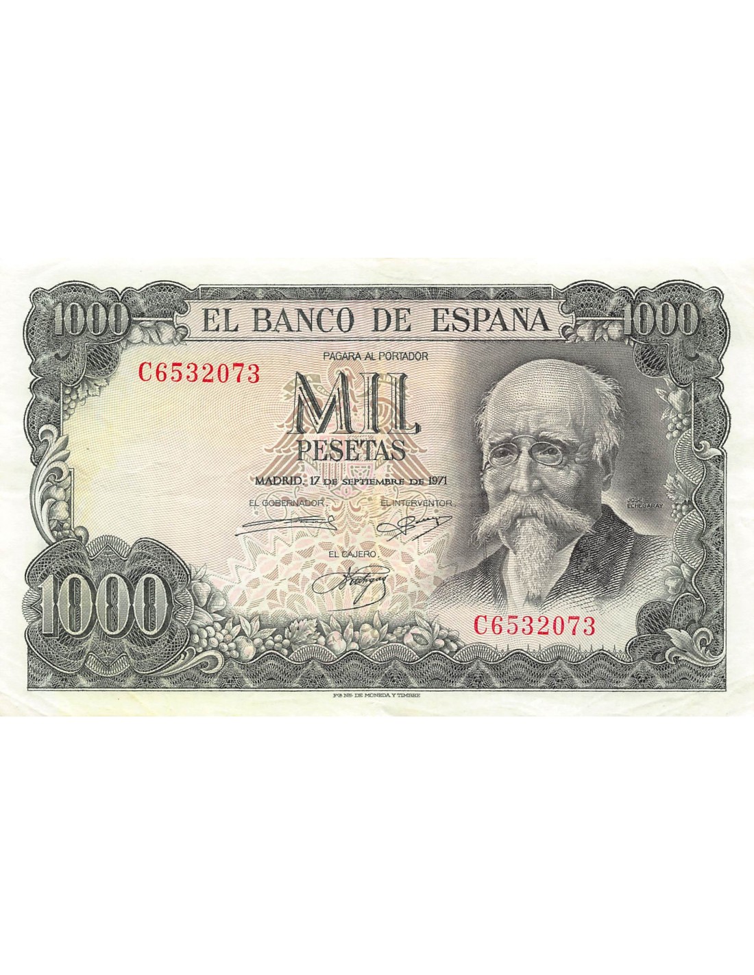 ESPAGNE, JOSE ECHEGARAY - 1000 PESETAS 1971 - SUP