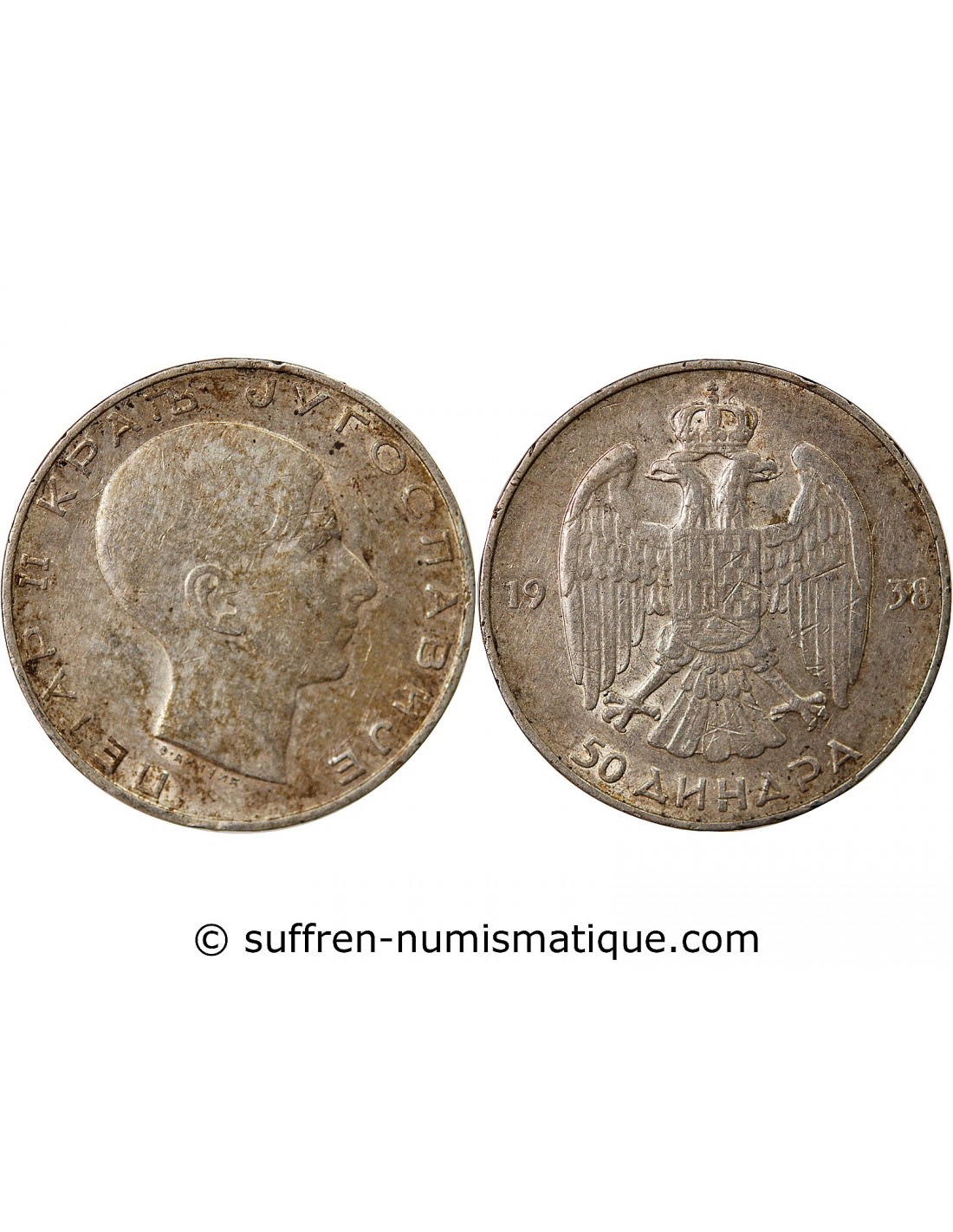 YOUGOSLAVIE, PIERRE II - 50 DINARS ARGENT 1938