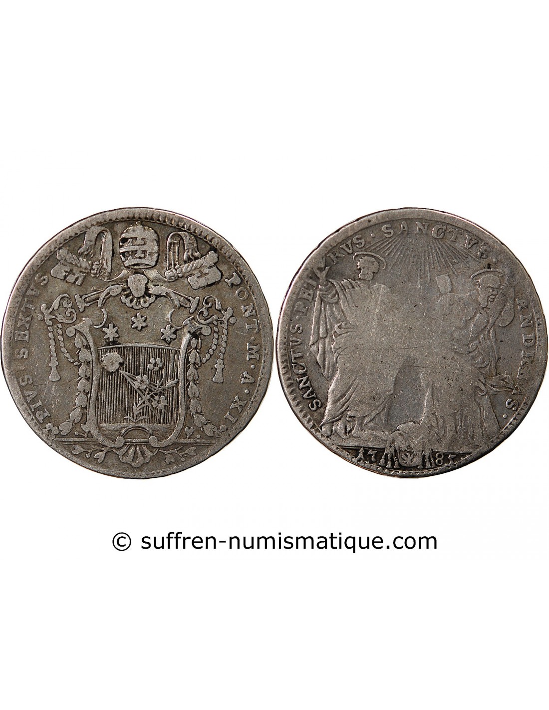 VATICAN, PIE VI - TESTONE ARGENT 1785