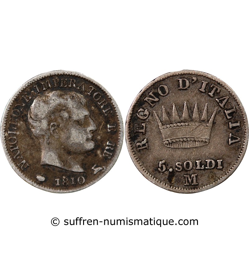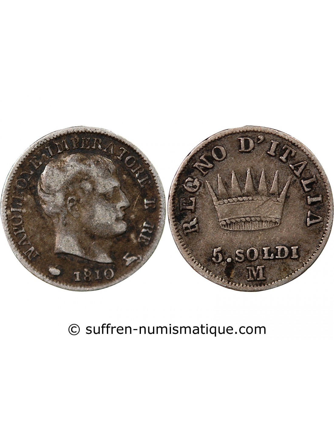 ITALIE, NAPOLEON 1er - 5 SOLDI 1810 M MILAN