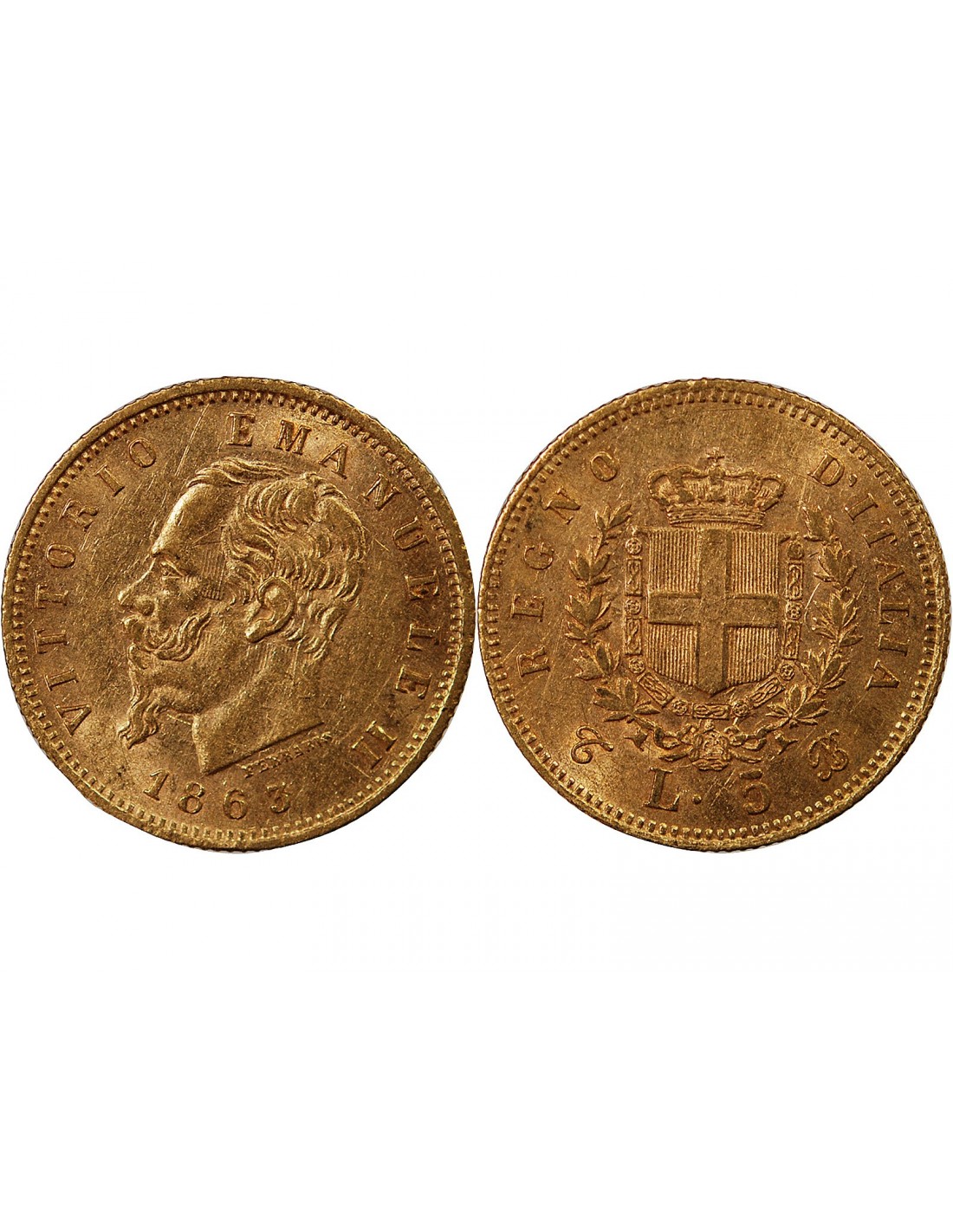 Italie Italie, Victor Emmanuel II - 5 Lire Or 1863 T BN