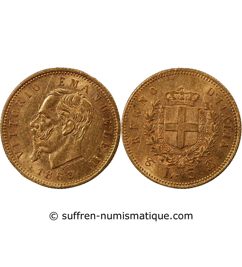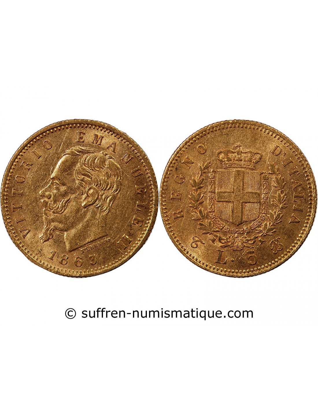 ITALIE, VICTOR-EMMANUEL II - 5 LIRE OR 1863 T BN