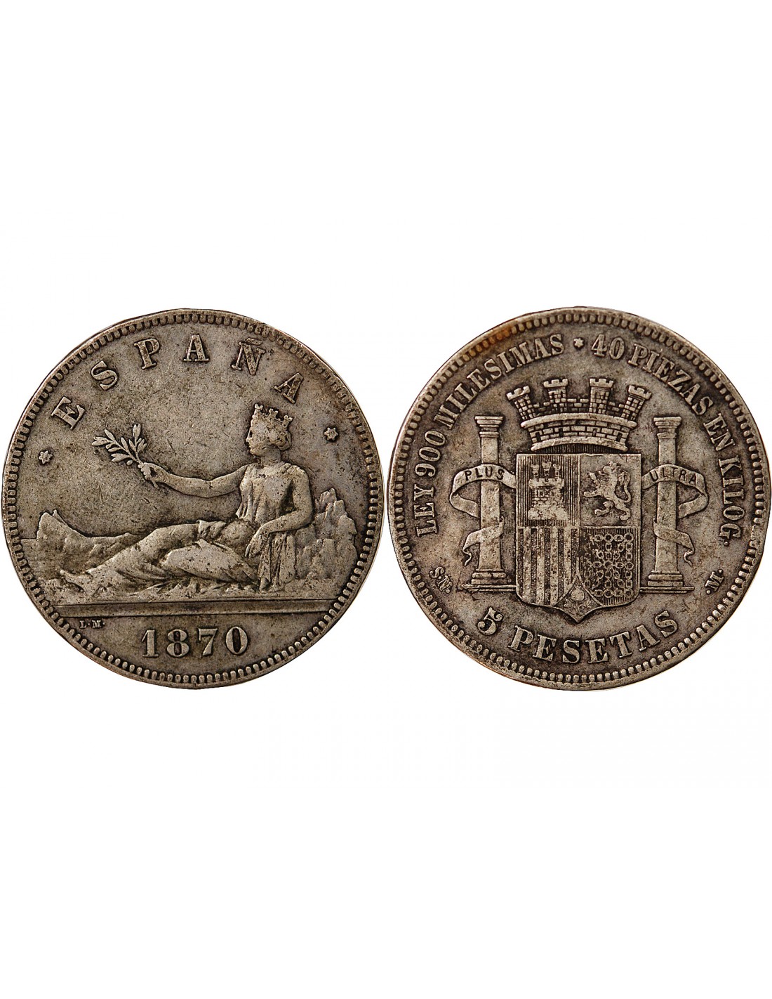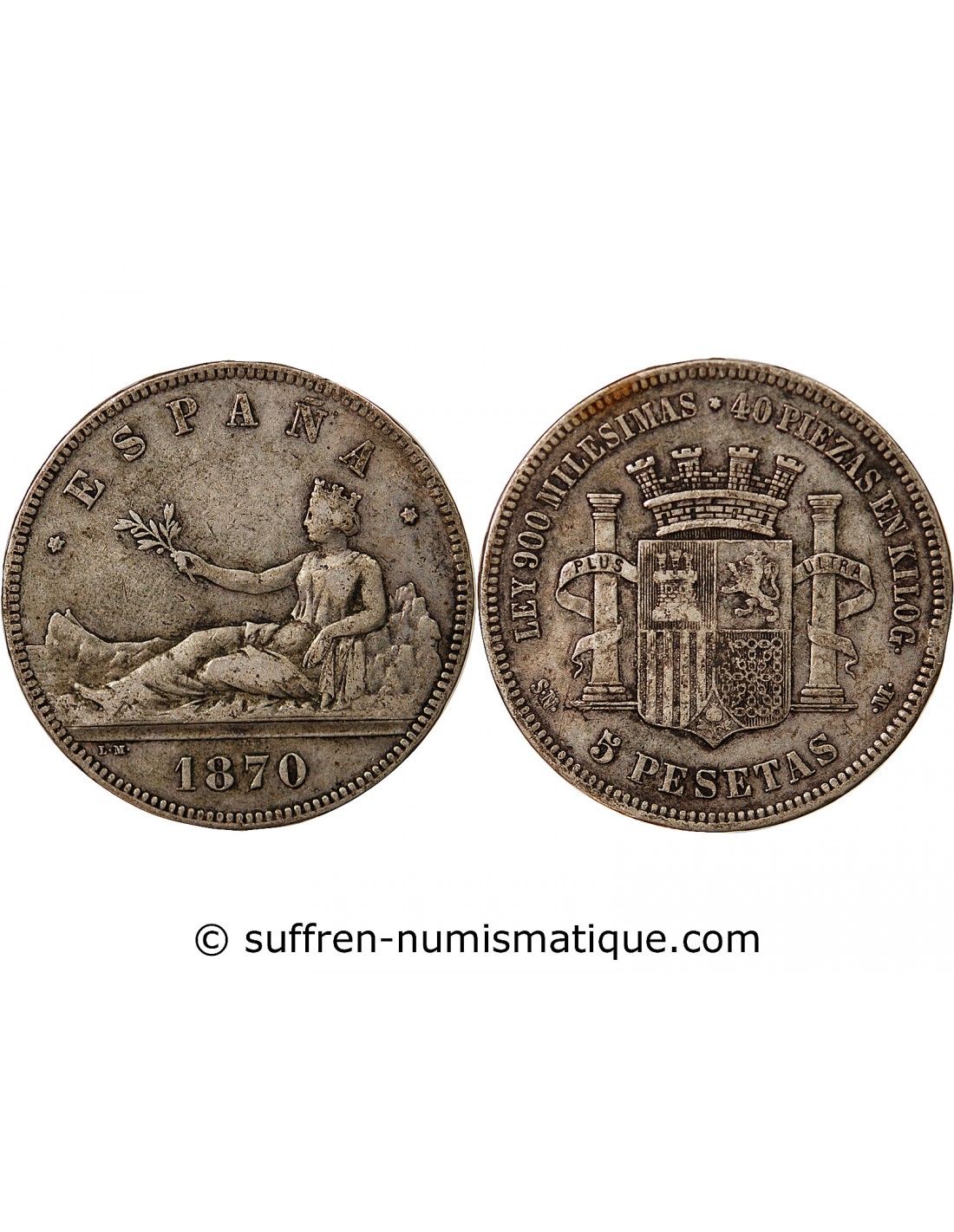ESPAGNE, GOUVERNEMENT PROVISOIRE - 5 PESETAS ARGENT 1870 SNM