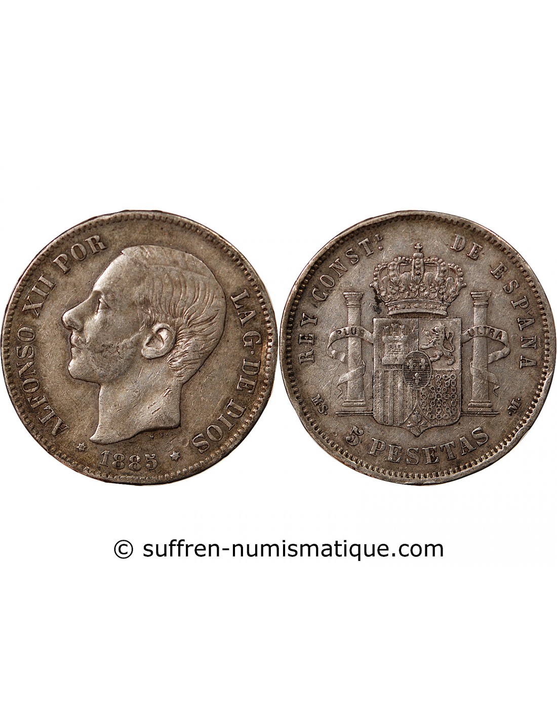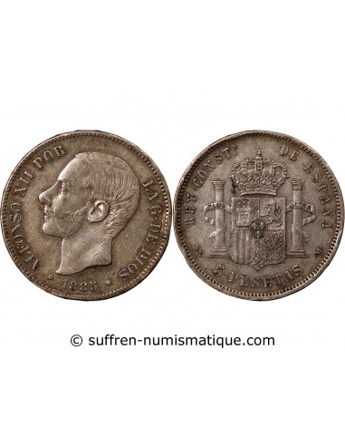 ESPAGNE, ALPHONSE XII - 5 PESETAS ARGENT 1885 MSM