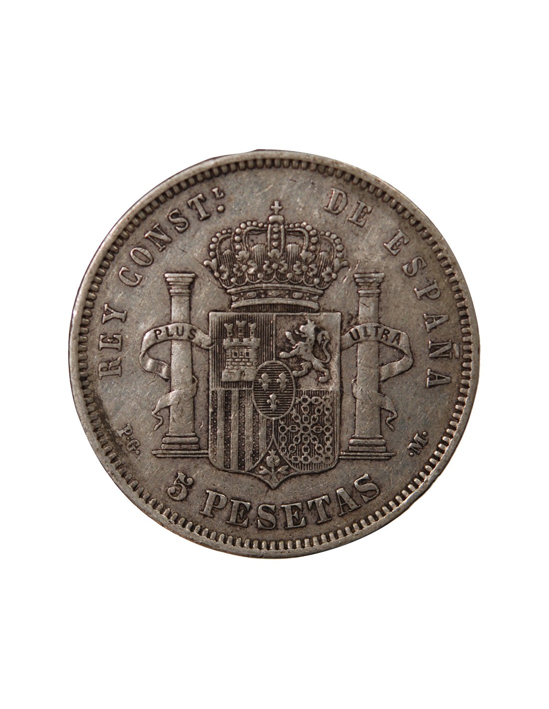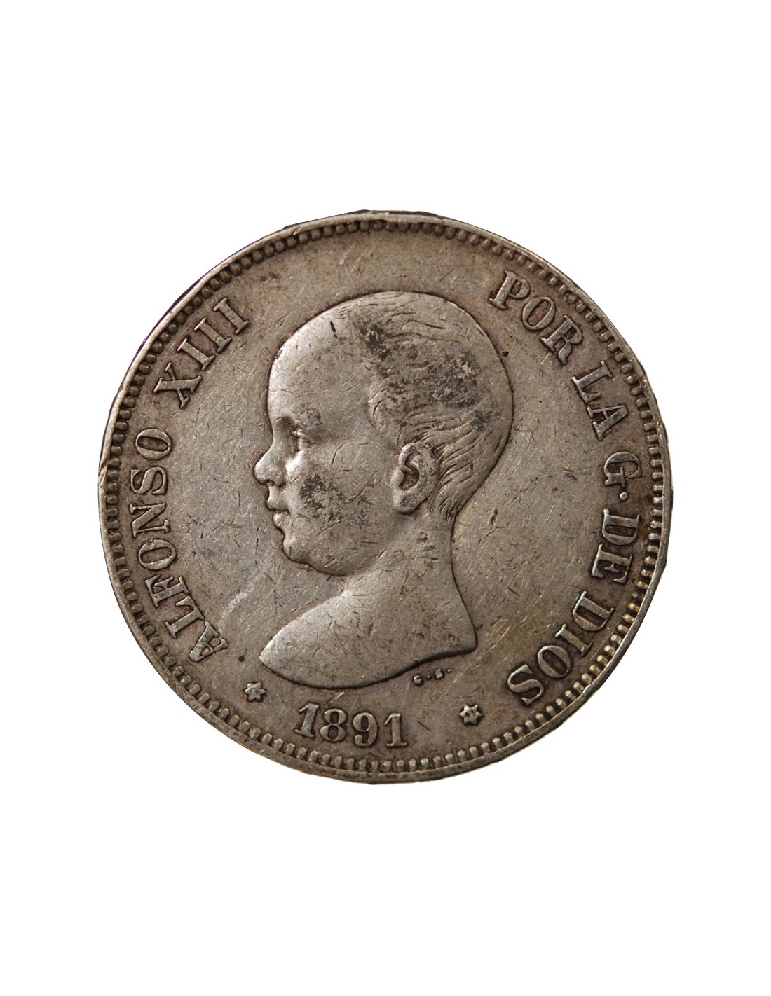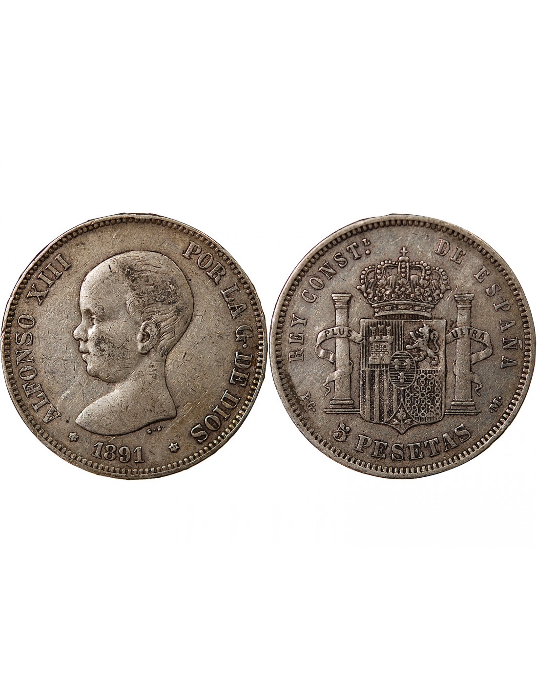 ESPAGNE, ALPHONSE XIII - 5 PESETAS ARGENT 1891 PGM