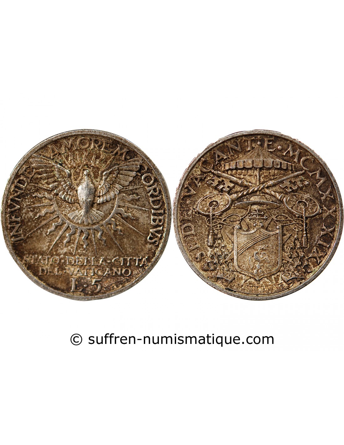 VATICAN, SIEGE VACANT - 5 LIRE ARGENT 1939