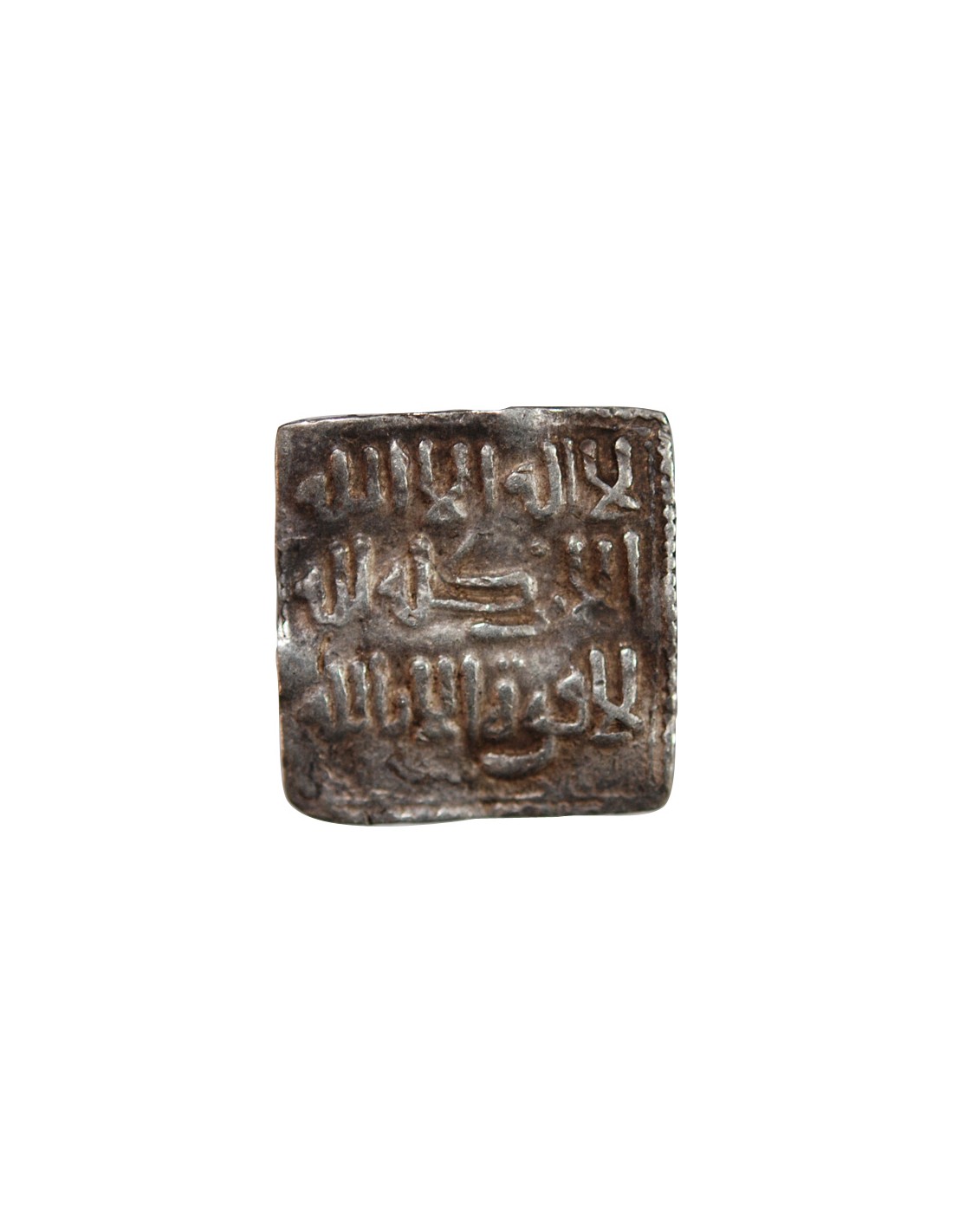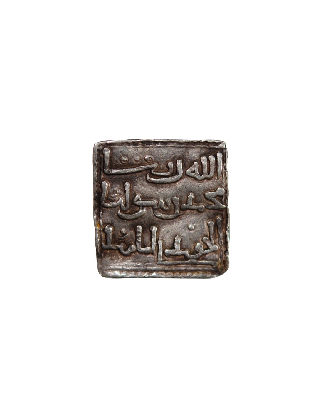 Les dirhams almohades se distinguent de ceux de leurs successeurs par la mention de l'imam al-Mahdi (Muḥammad ibn Toumert ?) au revers. Ce type en particulier se singularise des autres émissions anonymes par sa calligraphie de type coufique. Cette variété n'aurait été émise que durant une courte période au début de la dynastie.