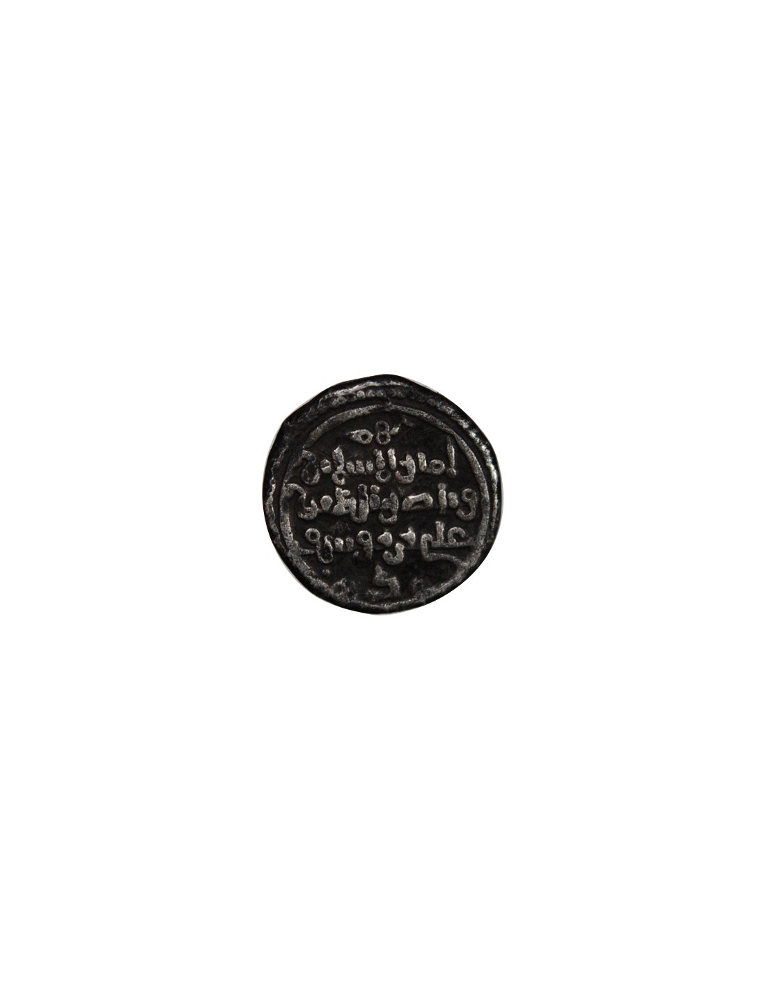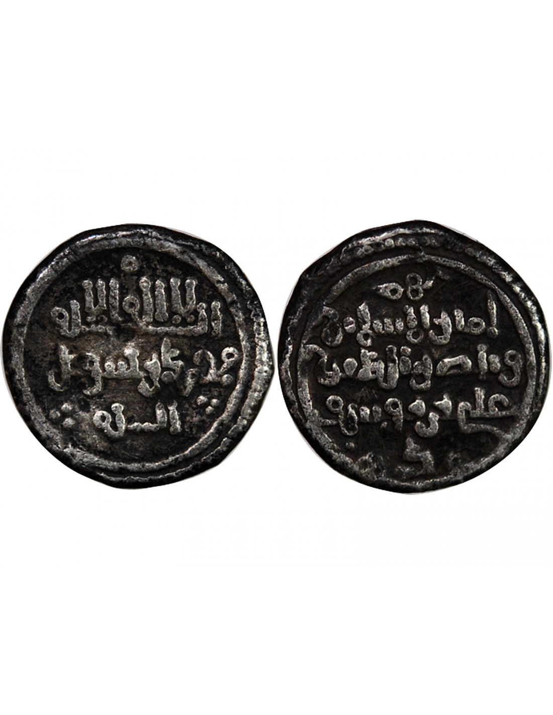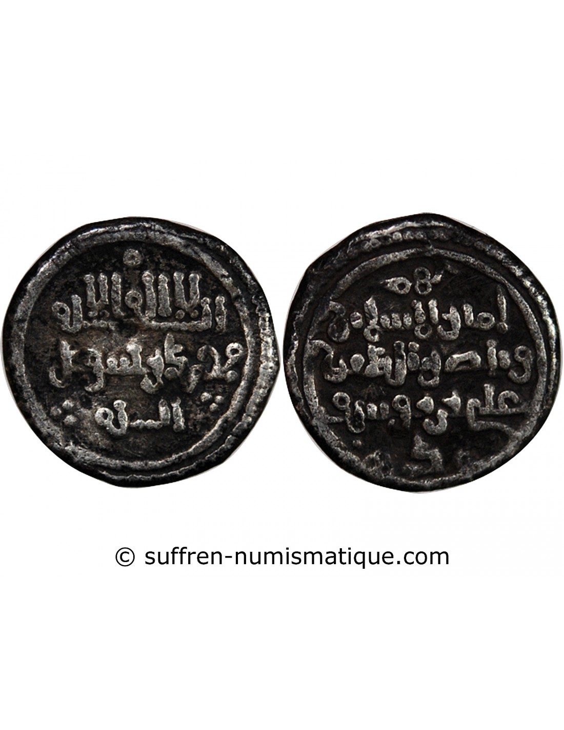 Kalimah à l'avers et titulature du dirigeant seul, rédigée sur 3 lignes au revers : Amir al-Mossamin / wa Naser al-Din / Ali ibn Yusuf