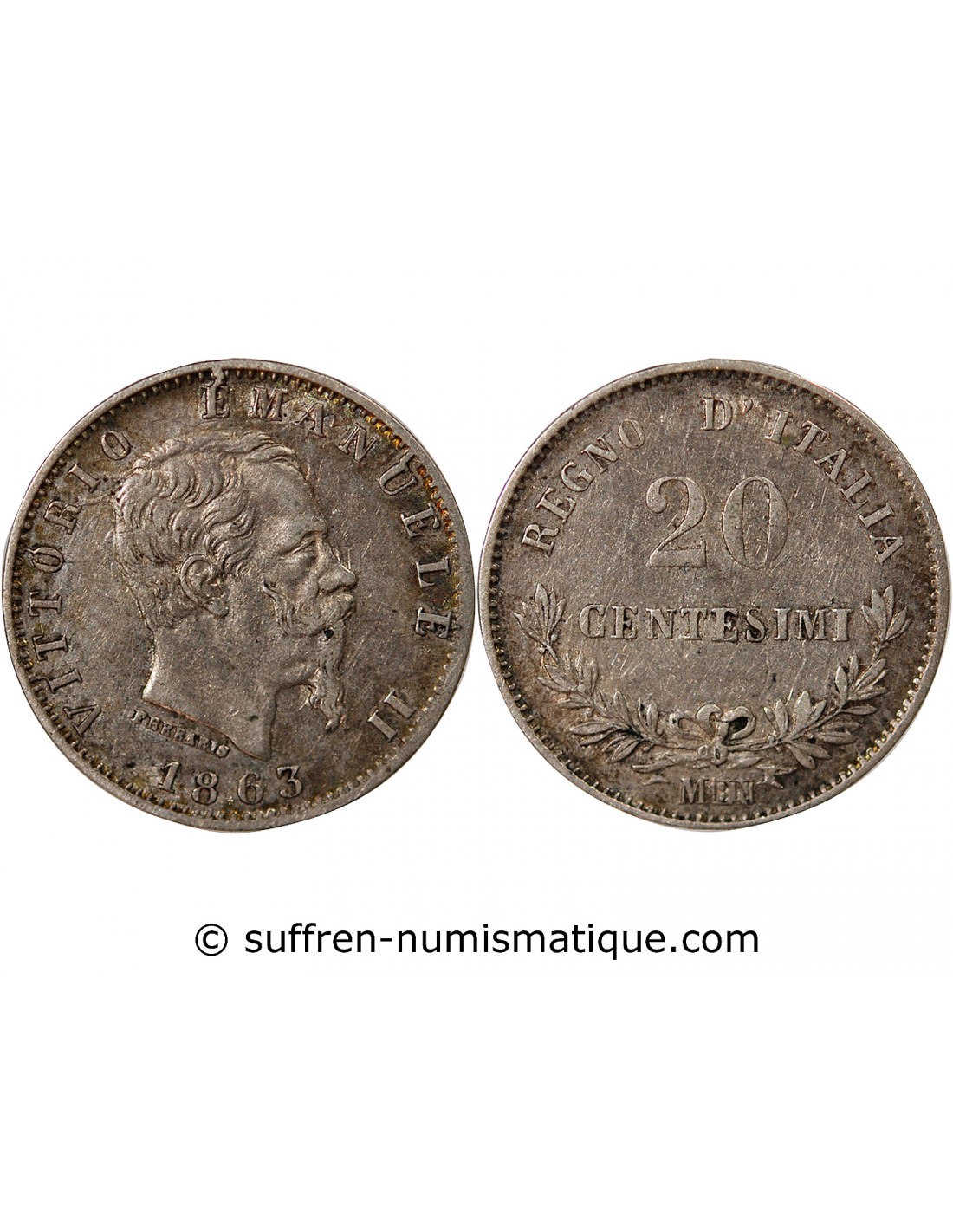 ITALIE, VICTOR EMMANUEL II - 20 CENTESIMI ARGENT 1863 M MILAN