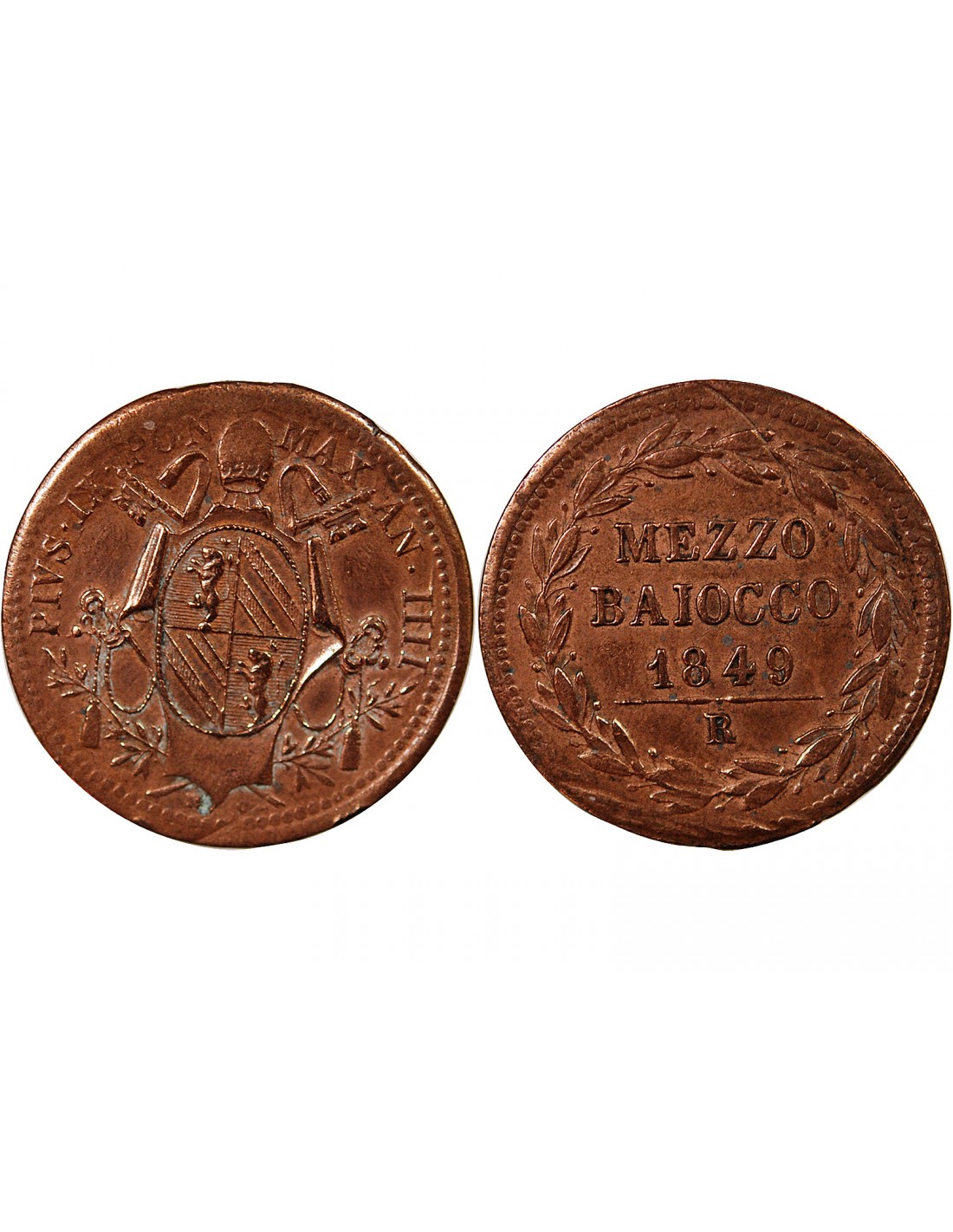 VATICAN, PIE IX - 1/2 BAIOCCO - 1849, AN IV, R ROME