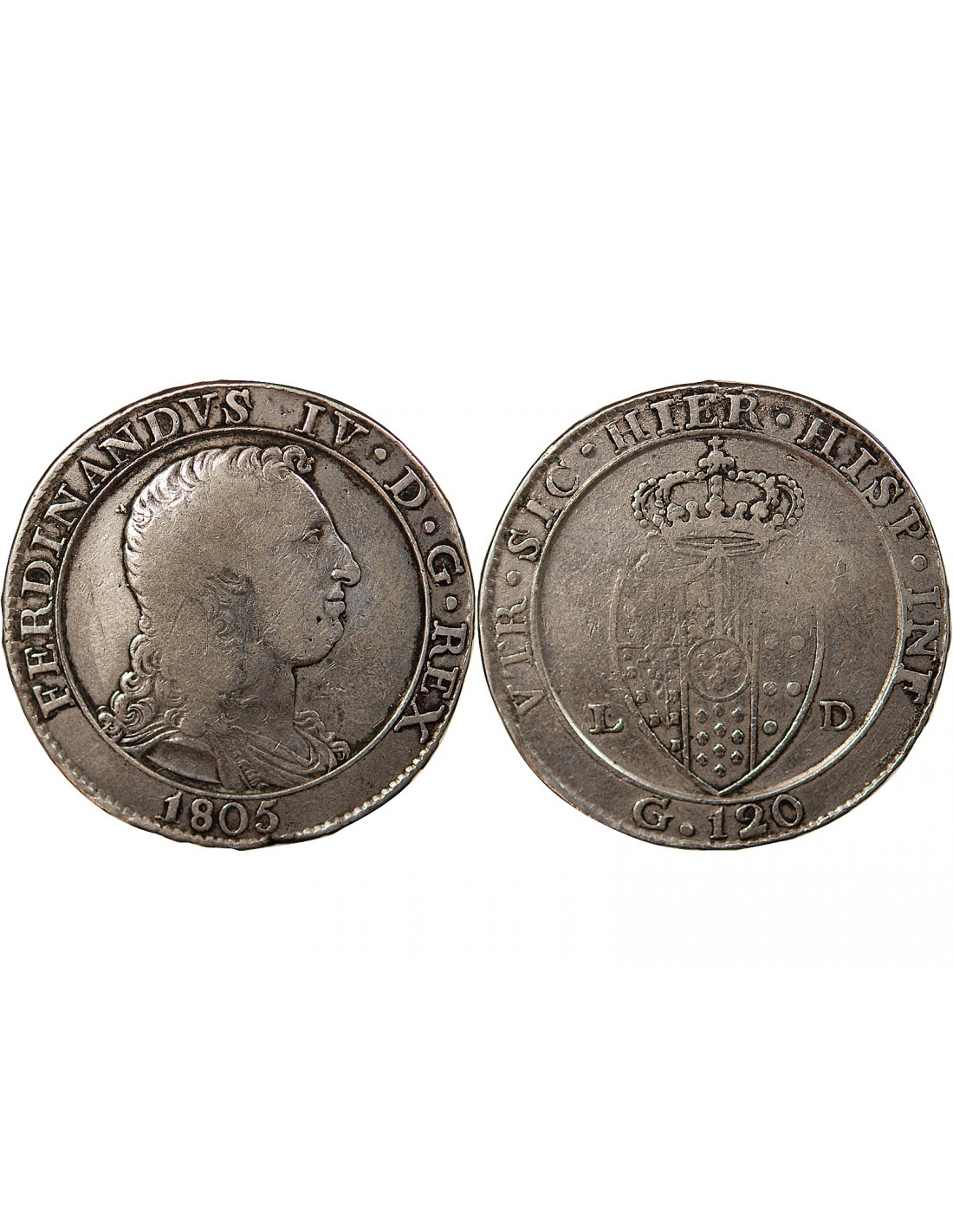 ITALIE, ROYAUME DE NAPLES, FERDINAND IV - 120 GRANA ARGENT - 1805 NAPLES
