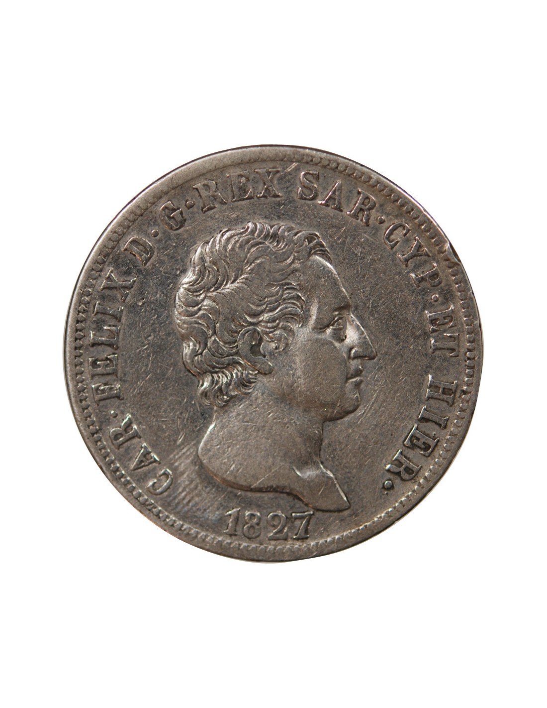 ITALIE, ROYAUME DE SARDAIGNE, CHARLES-FELIX - 5 LIRE ARGENT - 1827 P GÊNES