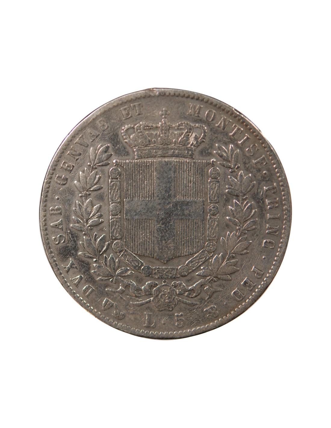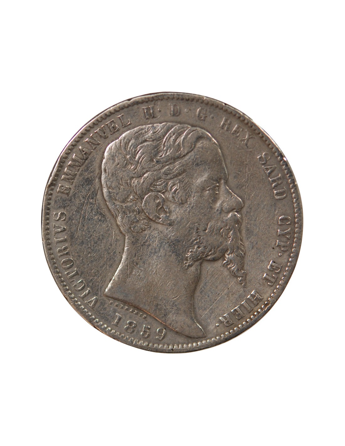 ITALIE, ROYAUME DE SARDAIGNE, VICTOR EMMANUEL II - 5 LIRE ARGENT - 1859 P GÊNES
