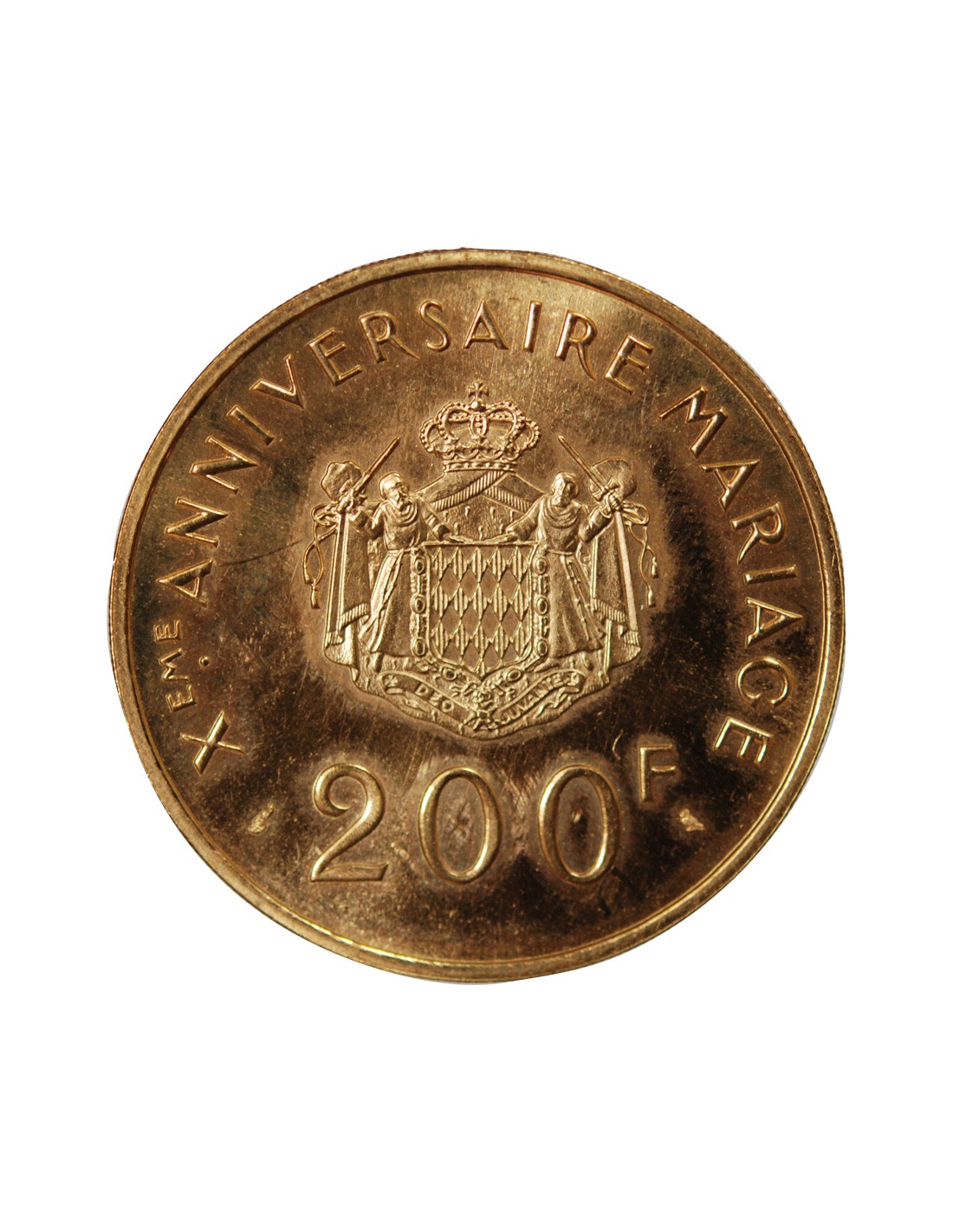 MONACO, RAINIER III - 200 FRANCS OR, 10e ANNIVERSAIRE DU MARIAGE PRINCIER - 1966