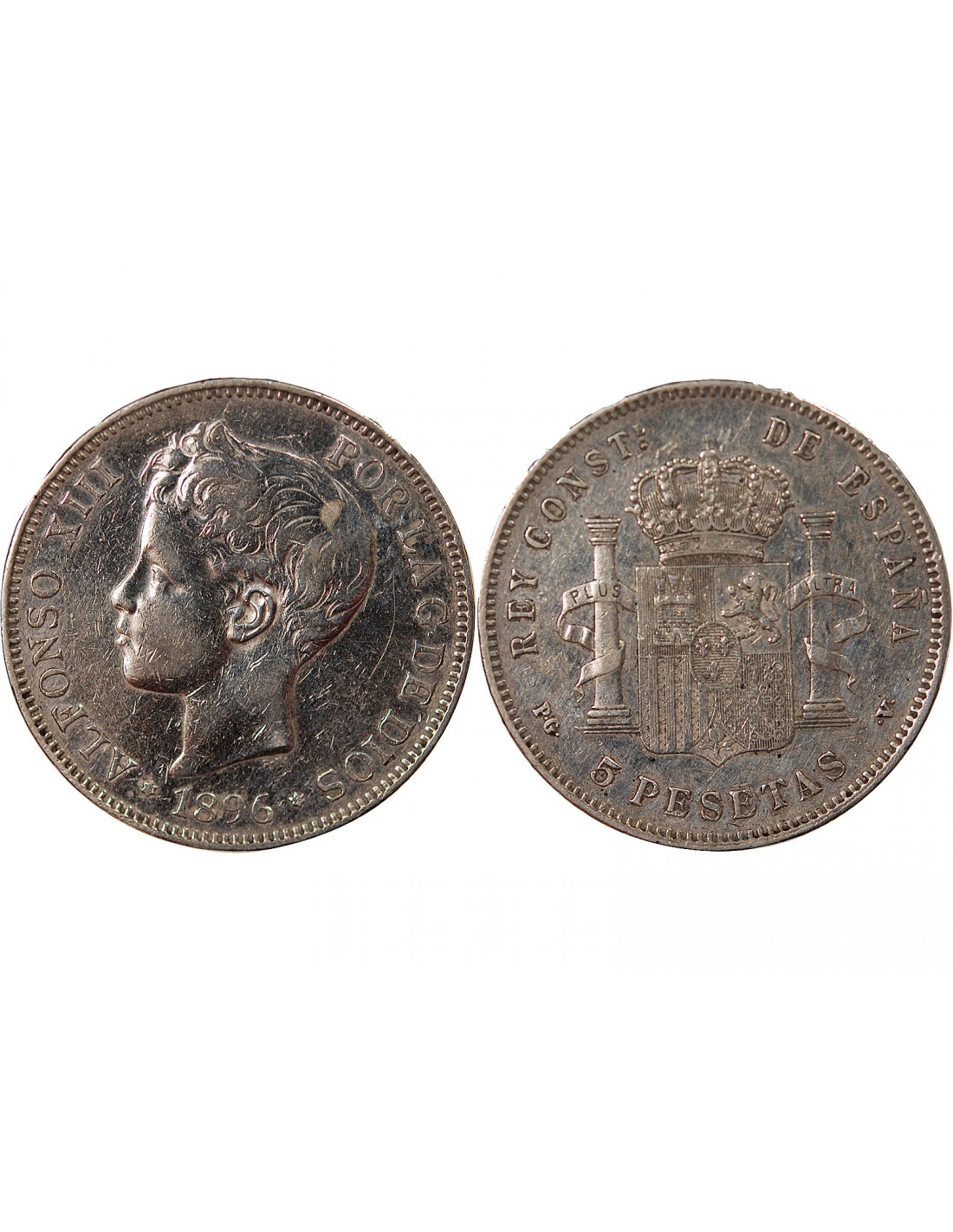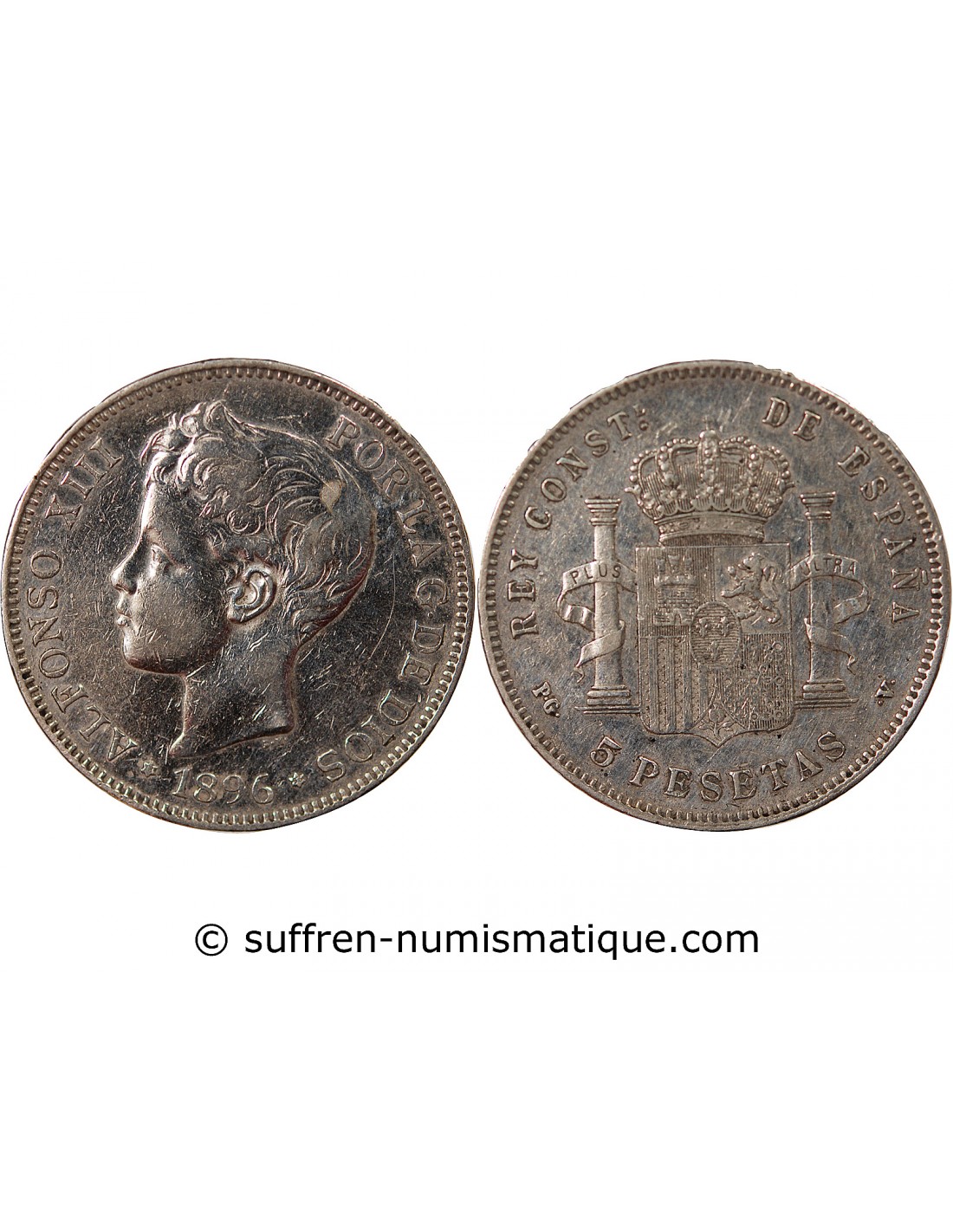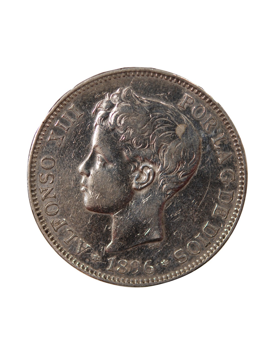 ESPAGNE, ALPHONSE XIII - 5 PESETAS ARGENT 3e PORTRAIT - 1896 MADRID
