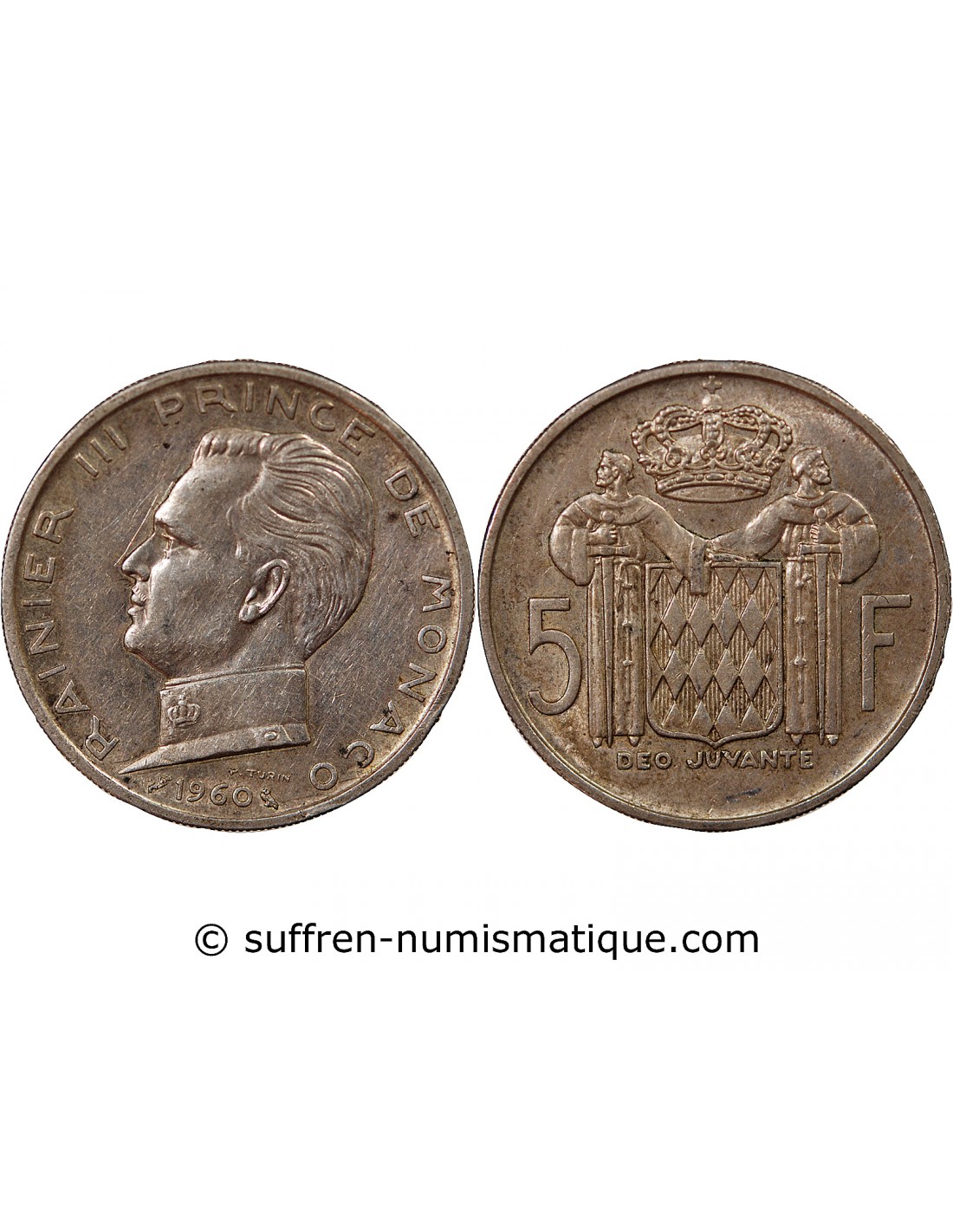 MONACO, RAINIER III - 5 FRANCS ARGENT 1960