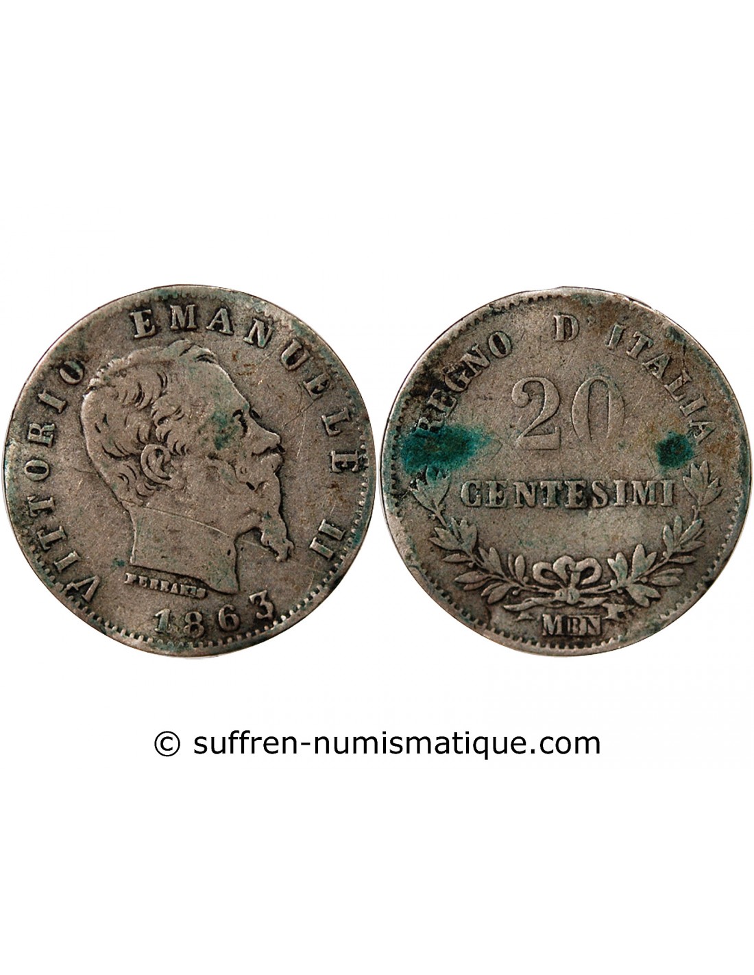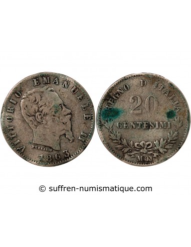 ITALIE, VICTOR EMMANUEL II - 20 CENTESIMI ARGENT 1863 M MILAN