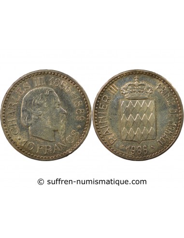 MONACO, RAINIER III - 10 FRANCS ARGENT - CENTENAIRE DE MONTE CARLO, CHARLES III, 1966