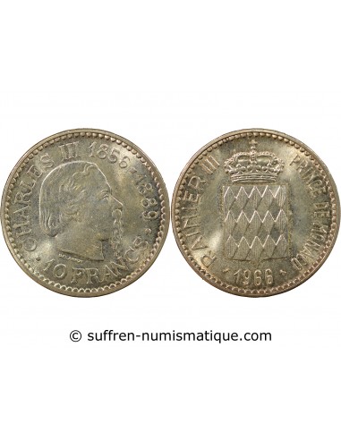 MONACO, RAINIER III - 10 FRANCS ARGENT - CENTENAIRE DE MONTE CARLO, CHARLES III, 1966