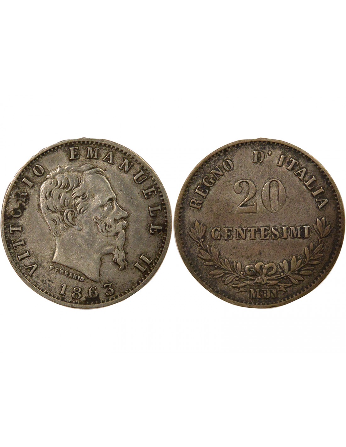 Italie Italie, Victor-Emmanuel - 20 Centesimi Argent - 1863 Milan