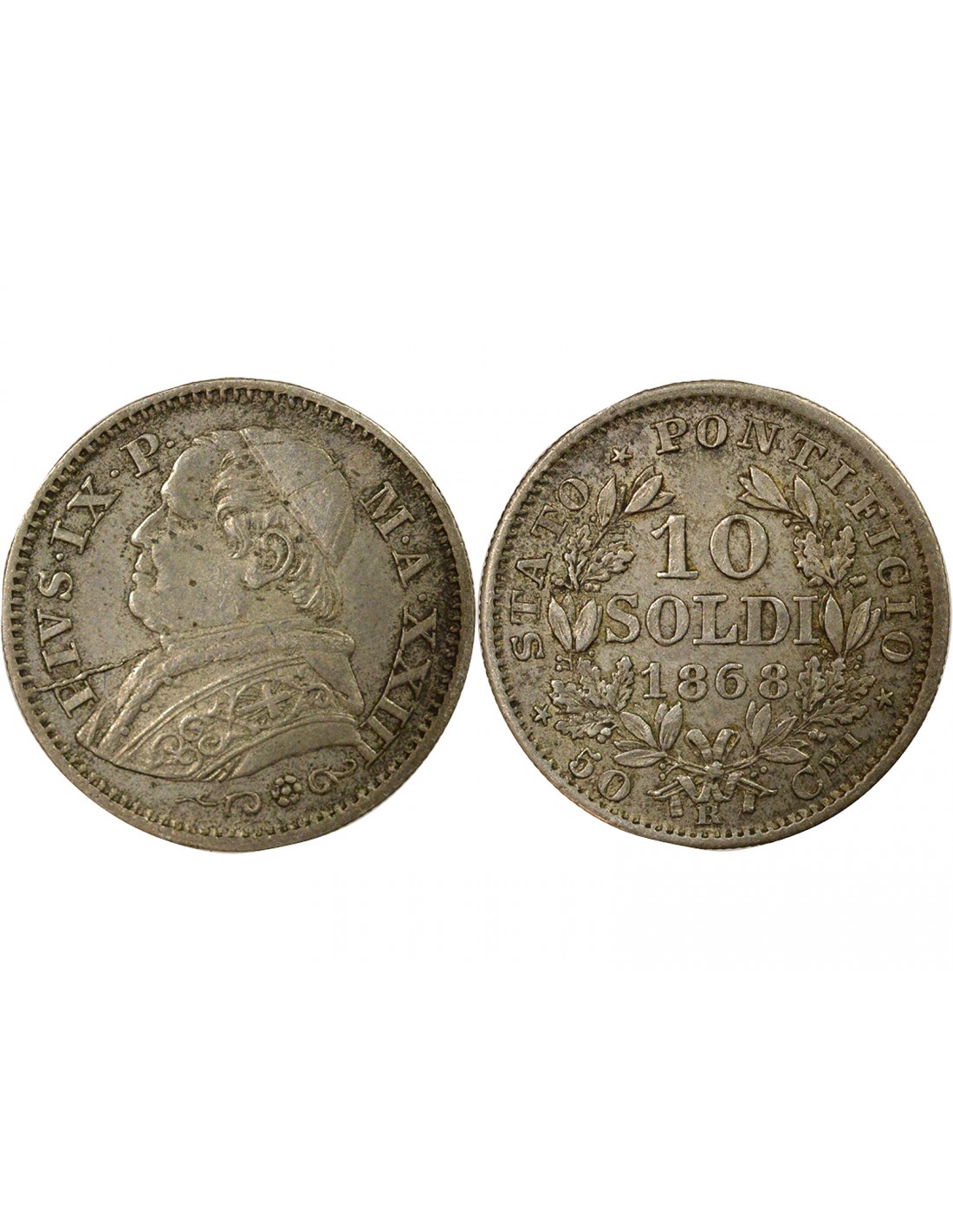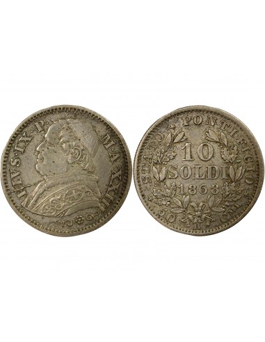 Vatican Pie IX - 10 Soldi Argent - 1868 Rome An XXIII