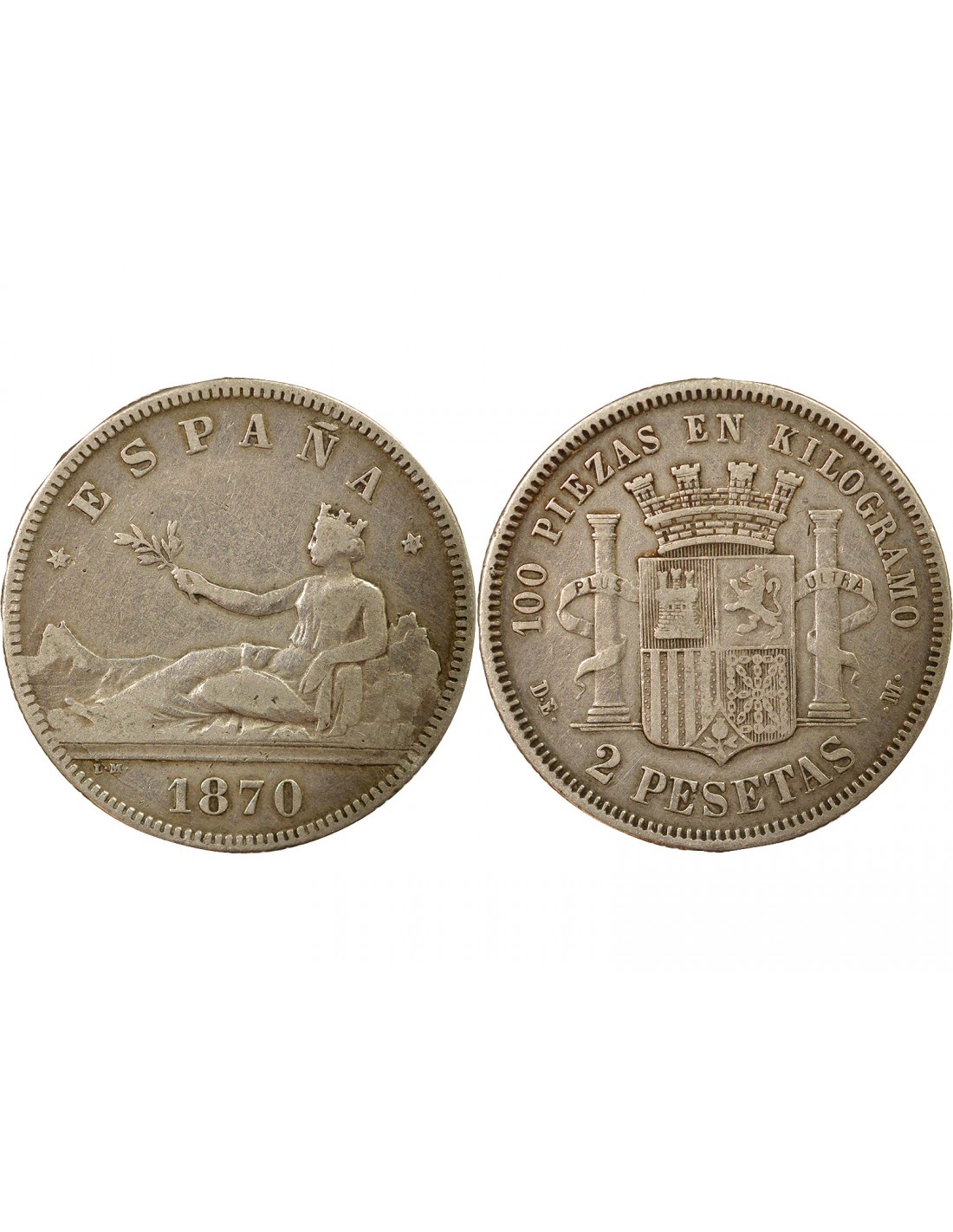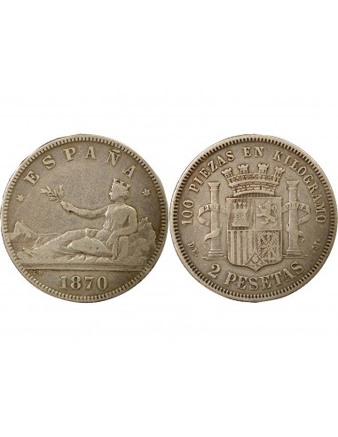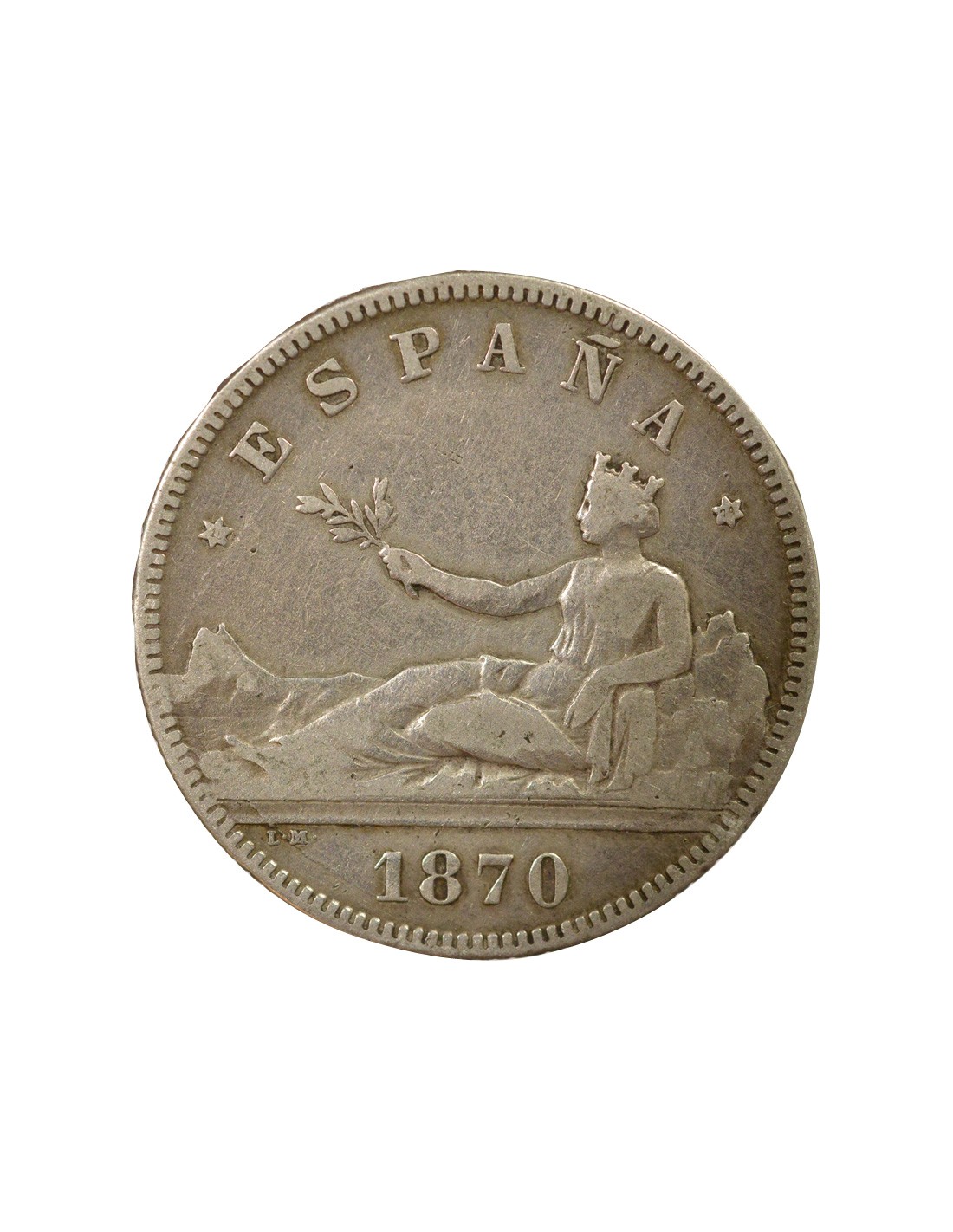Vendu Europe du Sud Espagne Espagne, Gouvernement Provisoire - 5 Pesetas Argent - 1870 M Madrid SUFFREN sf_22210 25,00 € ESPAGNE, GOUVERNEMENT PROVISOIRE - 5 PESETAS ARGENT - 1870 M MADRID View