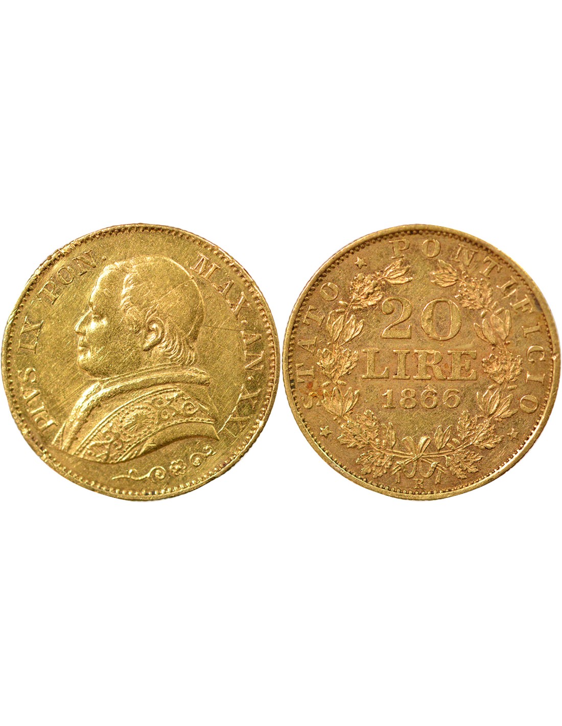 Etat Pontifical Pie IX - 20 Lire Or - 1866 R Rome, An XXI