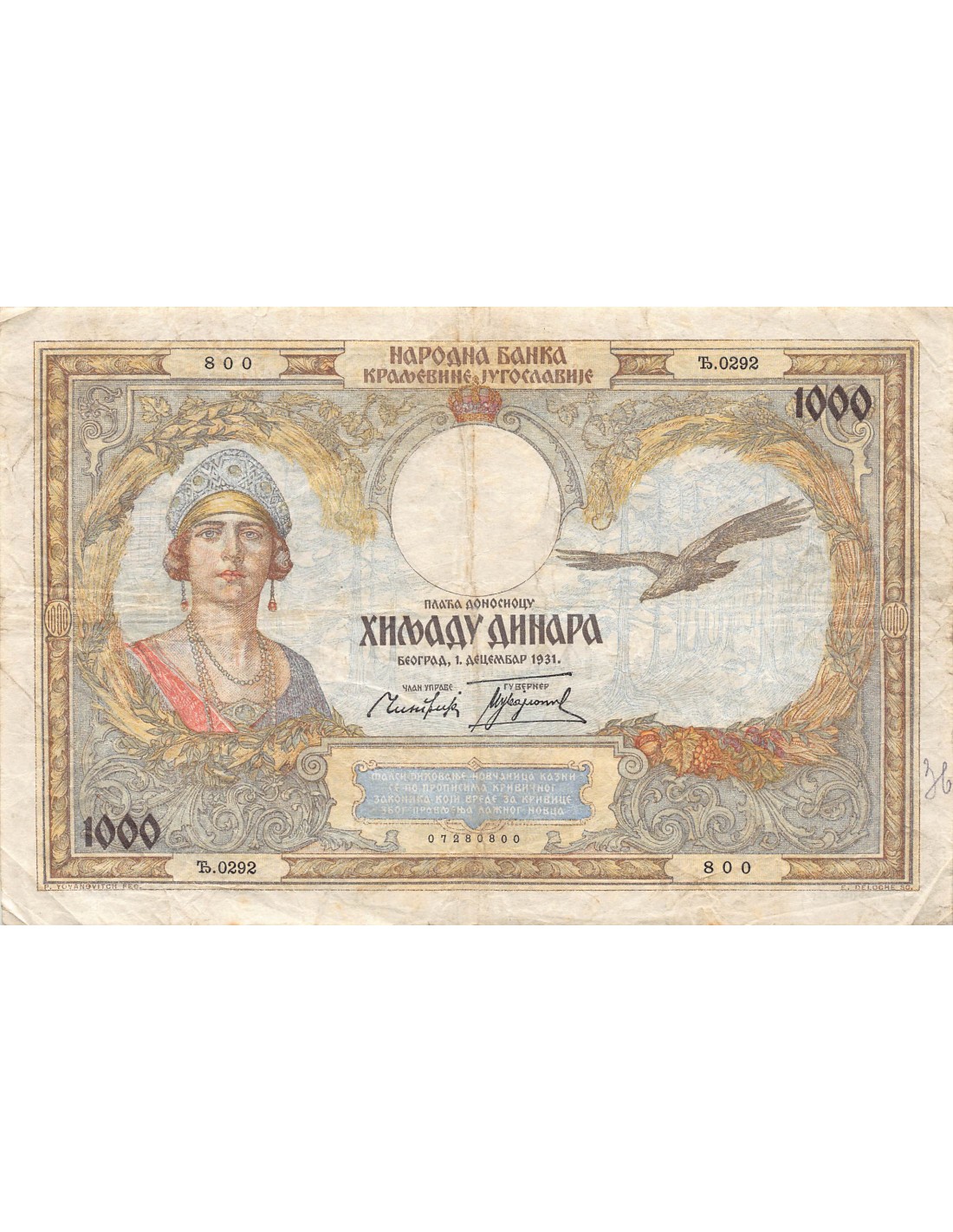 Yougoslavie 1000 Dinara Reine Marie - 1931