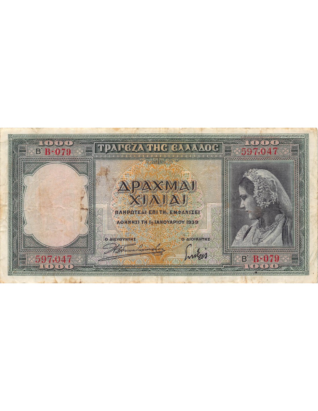 Grèce 1000 Drachms - Femme - Parthénon - 1939