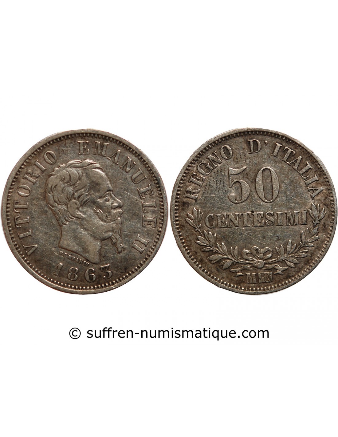 ITALIE, VITTORIO EMANUELE - 50 CENTESIMI 1863 M