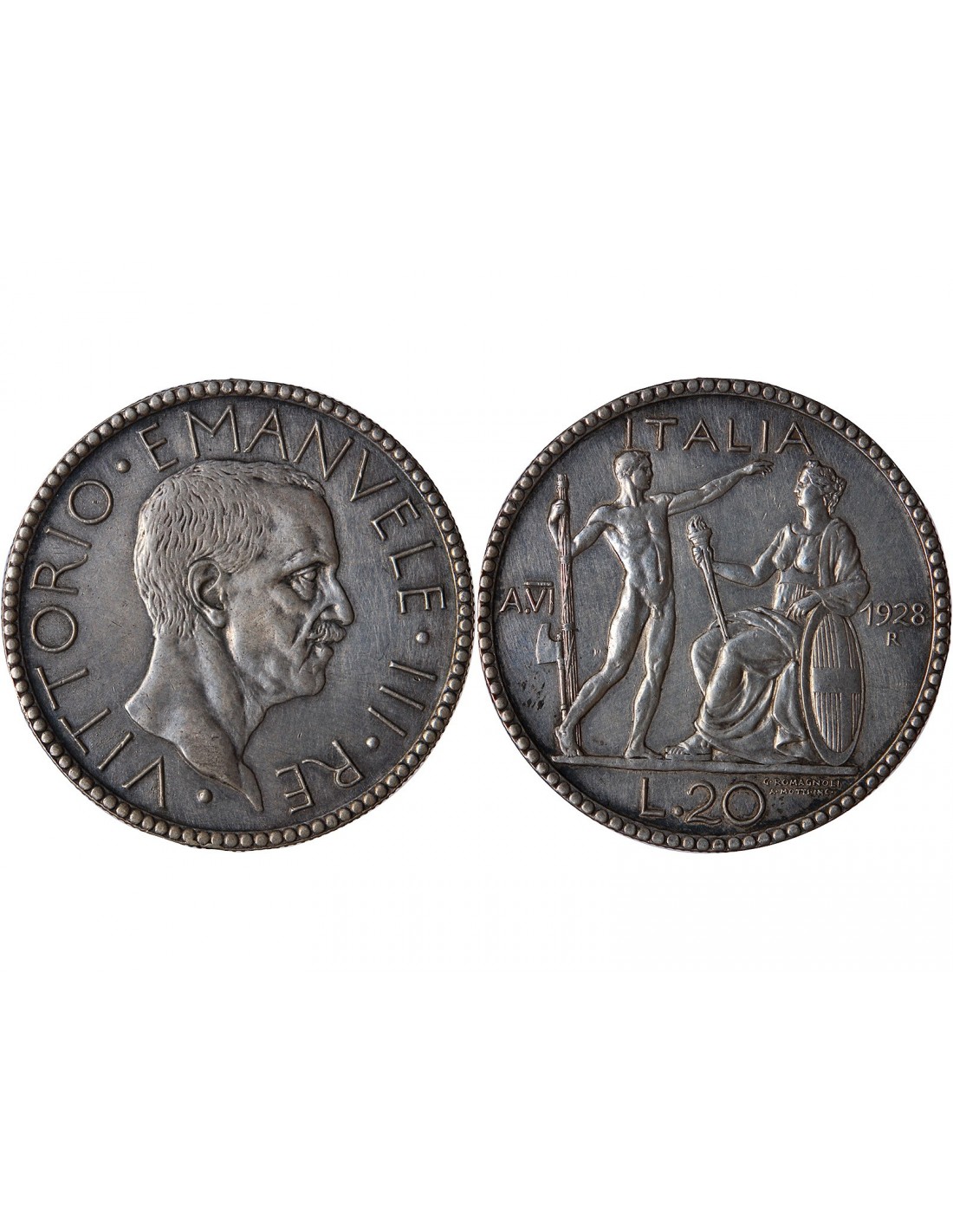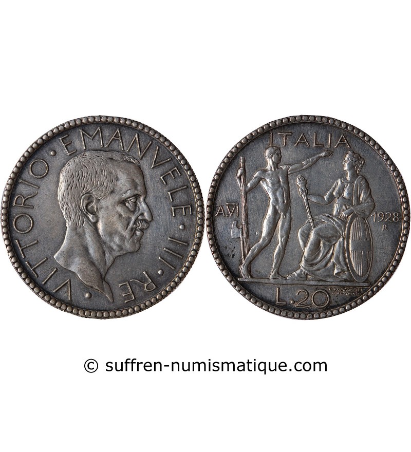 ITALIE, VICTOR EMMANUEL III - 20LIRE ARGENT 1928 ROME