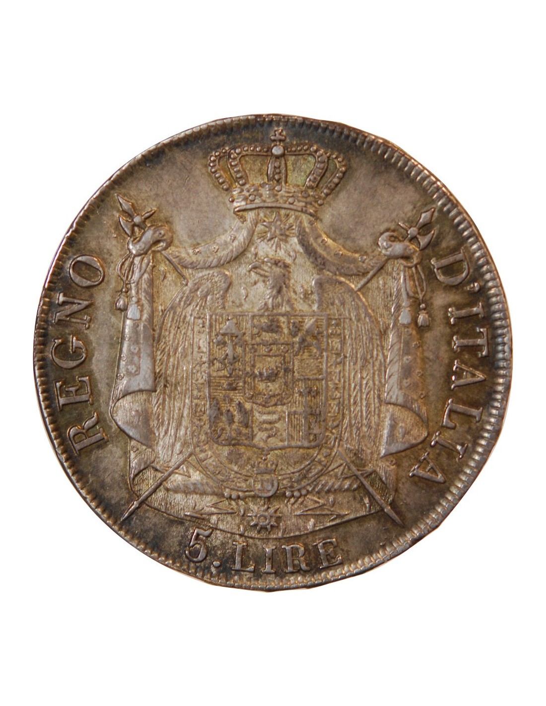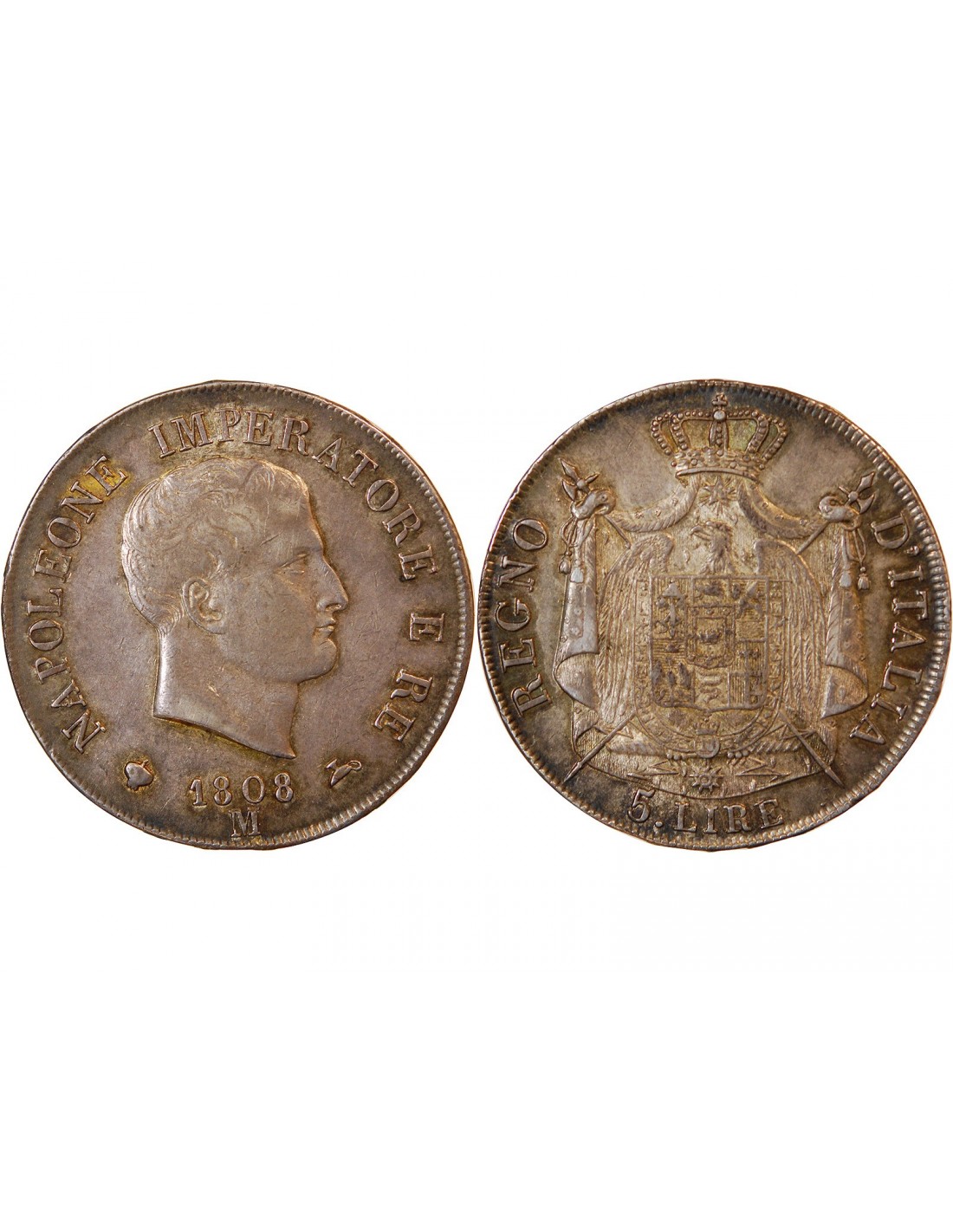 Italie ITALIE, NAPOLEON 1er - 5 LIRE ARGENT 1808 M MILAN