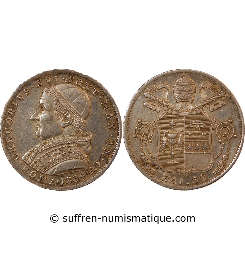 VATICAN, GREGOIRE XVI - 30 BAIOCCHI 1834 ROME