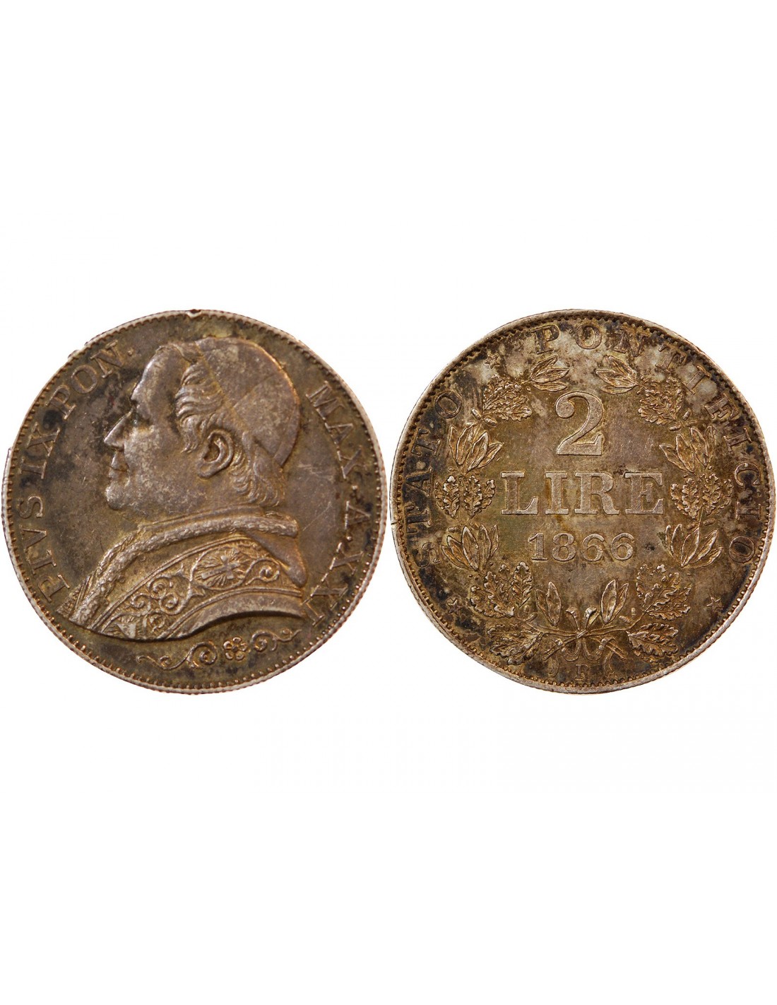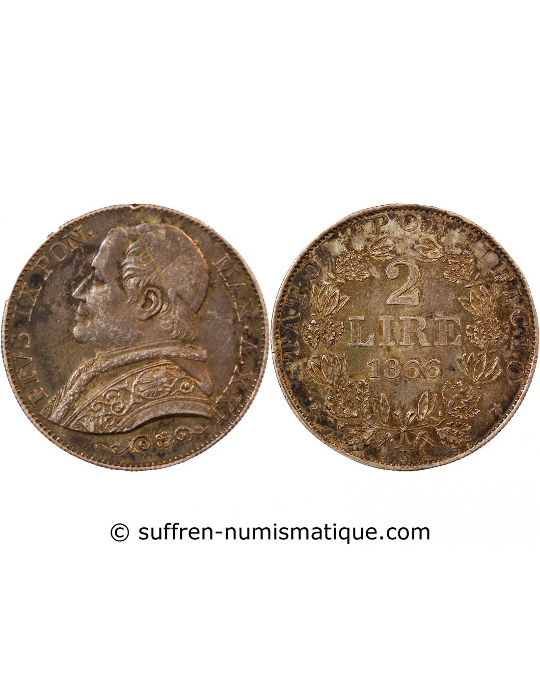 VATICAN, PIE IX - 2 LIRE 1866 ROME AN XXI