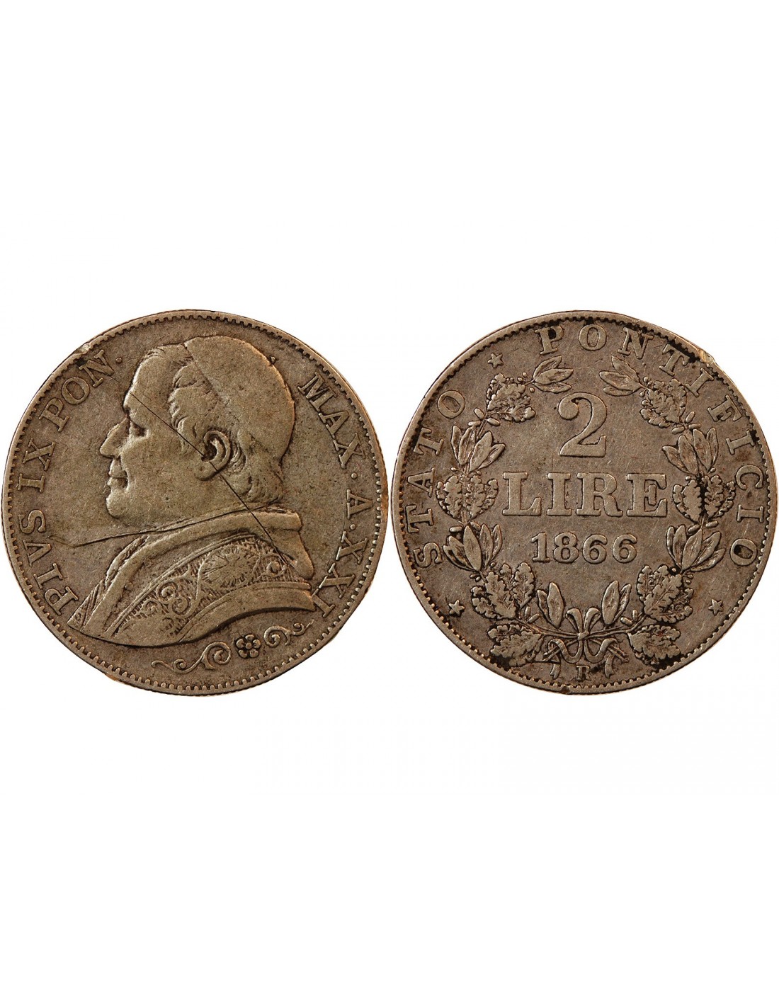 VATICAN, PIE IX - 2 LIRE 1866 ROME AN XXI