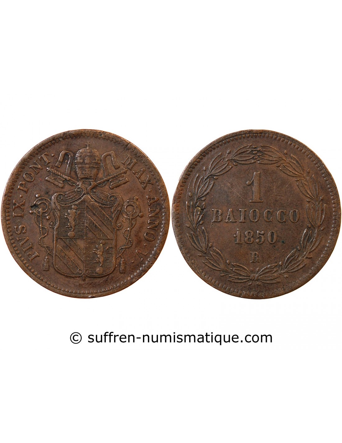 VATICAN, PIE IX - BAIOCCO 1850 ROME AN V