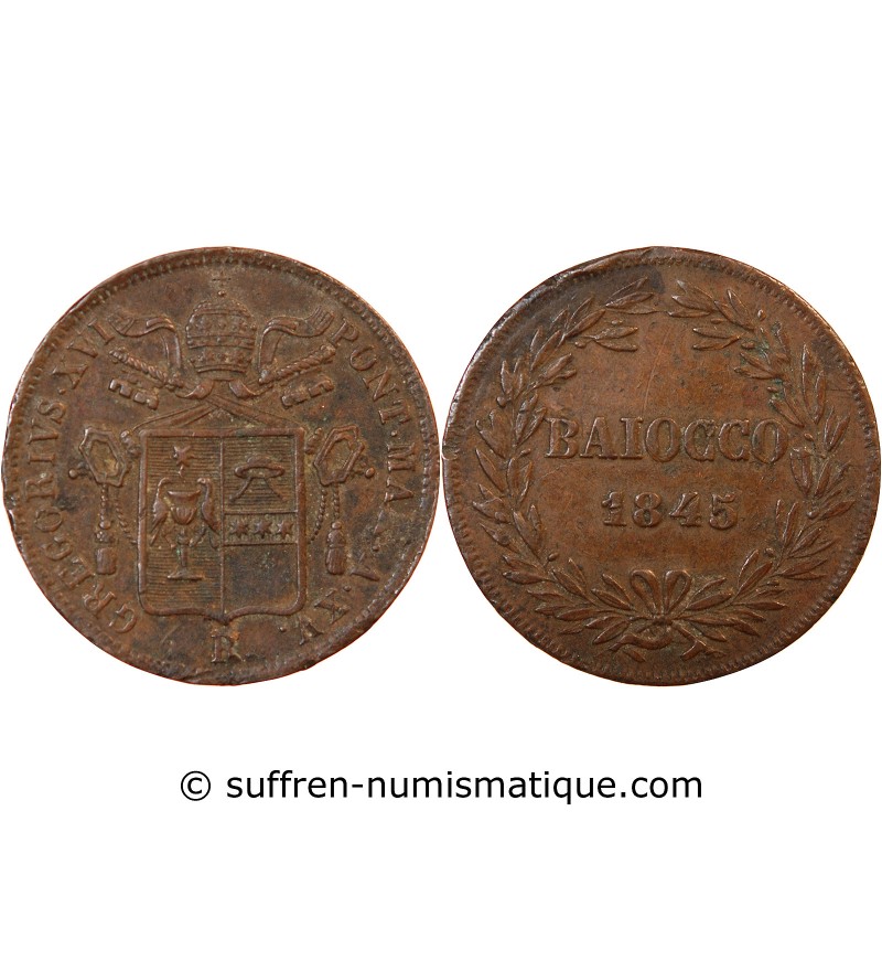 VATICAN, GREGOIRE XVI - BAIOCCO 1845 ROME AN XV