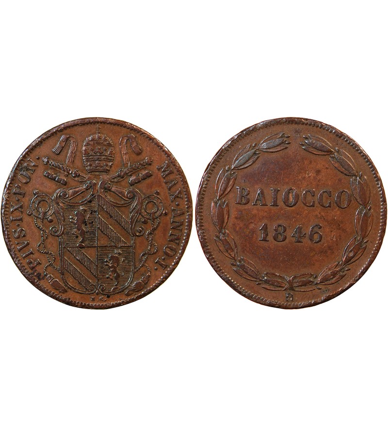 VATICAN, PIE IX - BAIOCCO 1846 ROME AN I