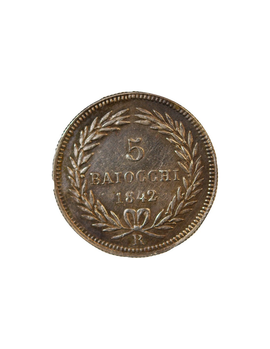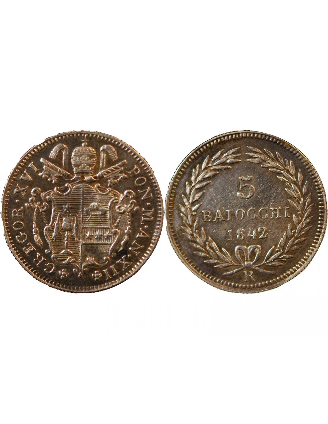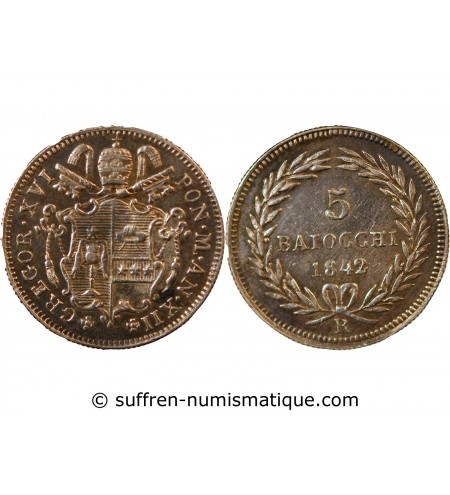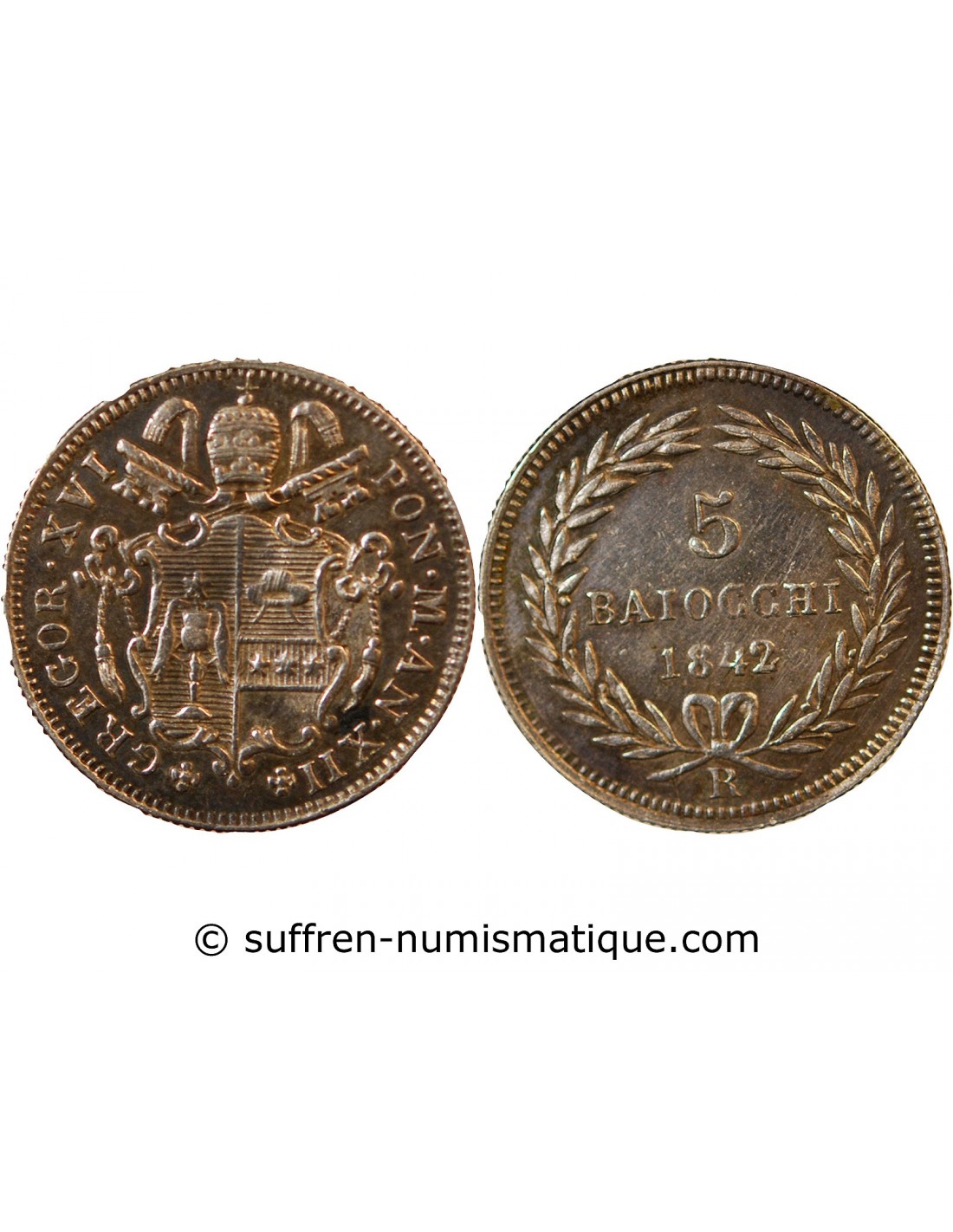 VATICAN, GREGOIRE XVI - 5 BAIOCCHI 1842 ROME AN XII