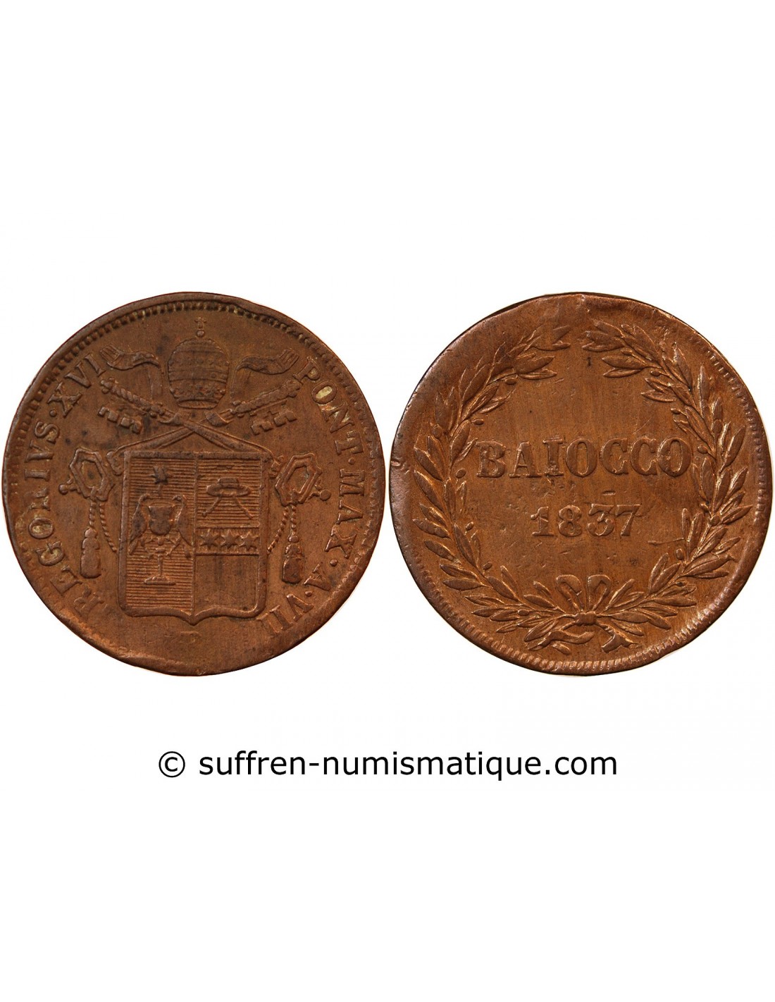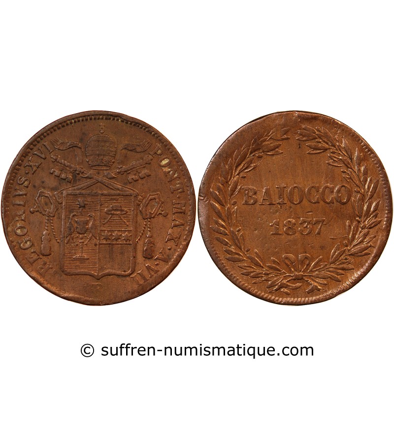 VATICAN, GREGOIRE XVI - BAIOCCO 1837 ROME ou BOLOGNE AN VII