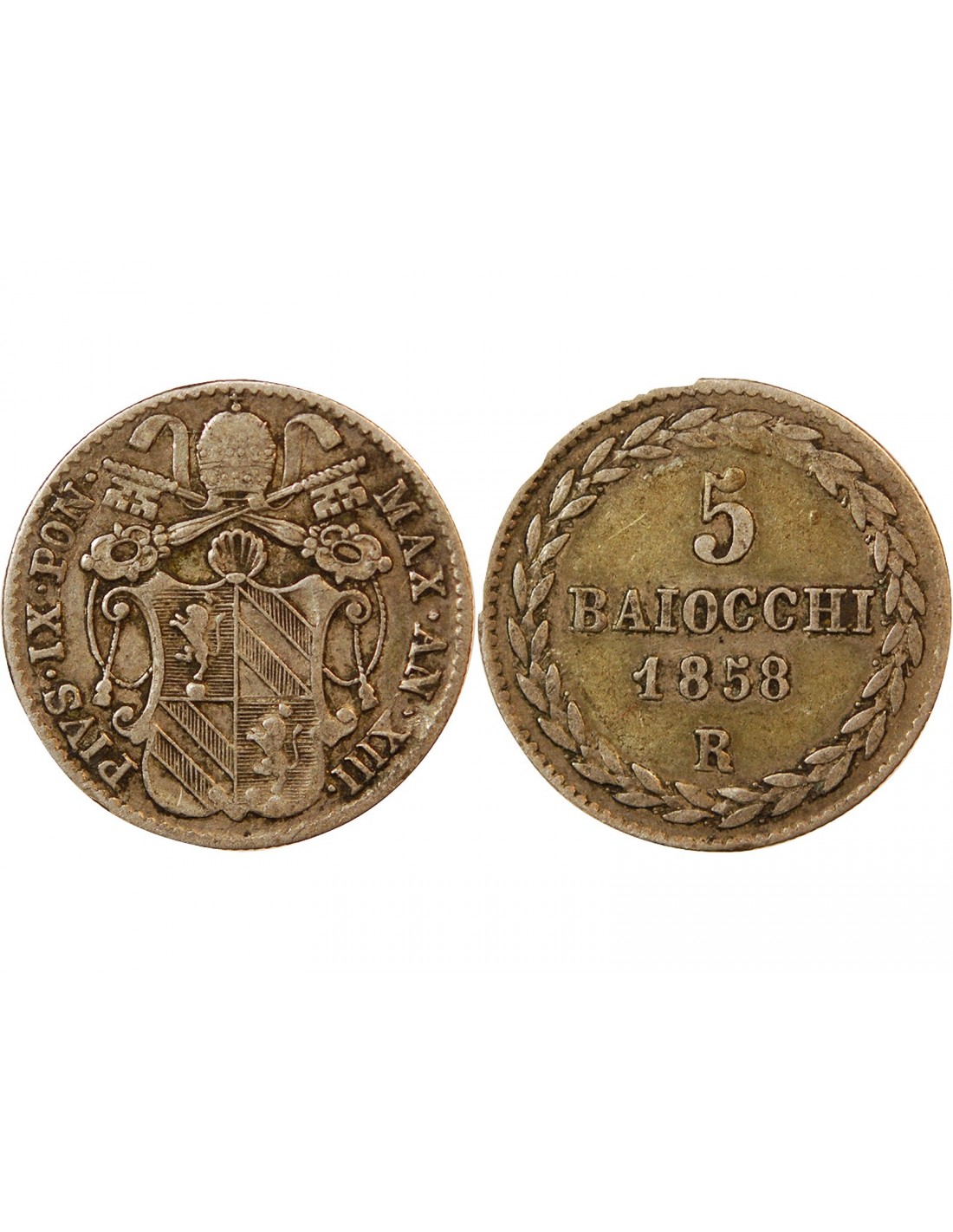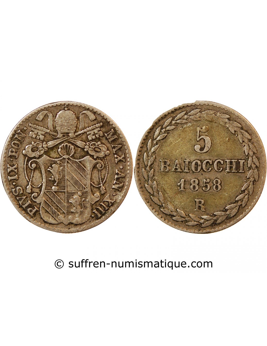 VATICAN, PIE IX - 5 BAIOCCHI 1858 ROME AN XIII