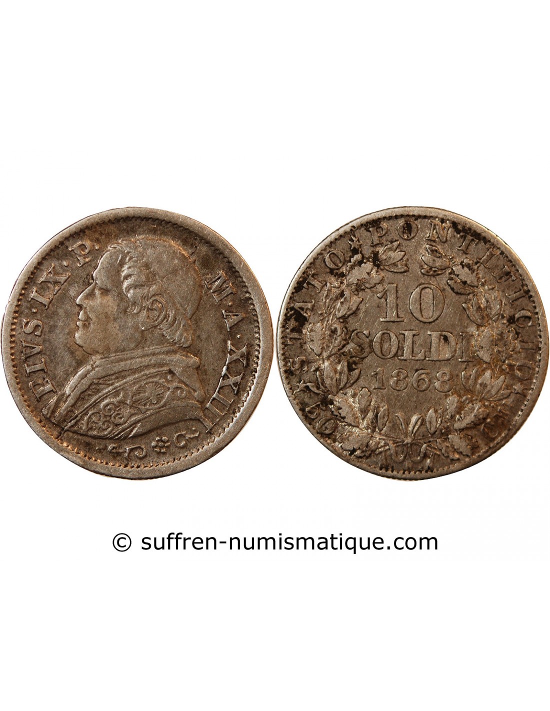 VATICAN, PIE IX - 10 SOLDI 1868 ROME AN XXIII