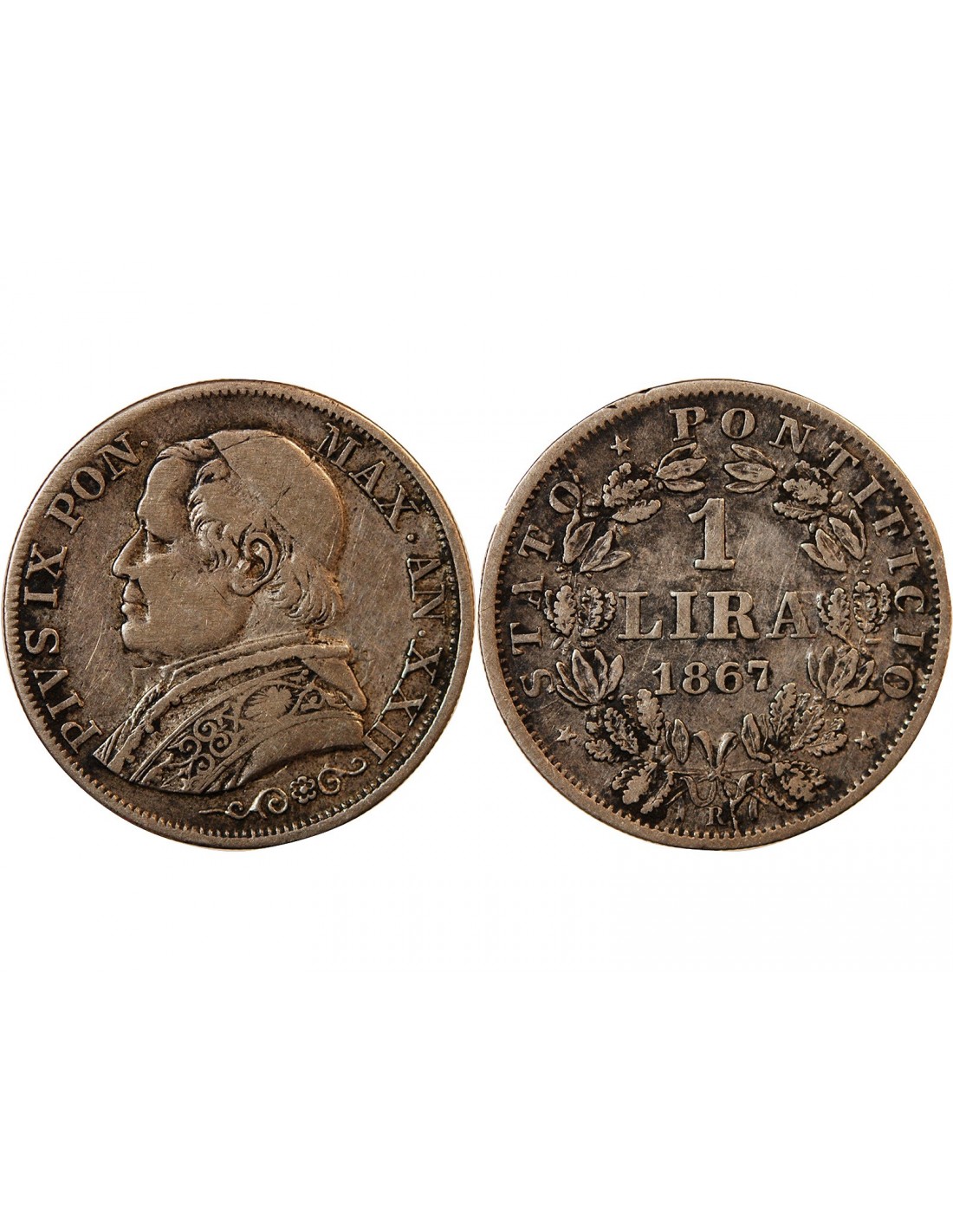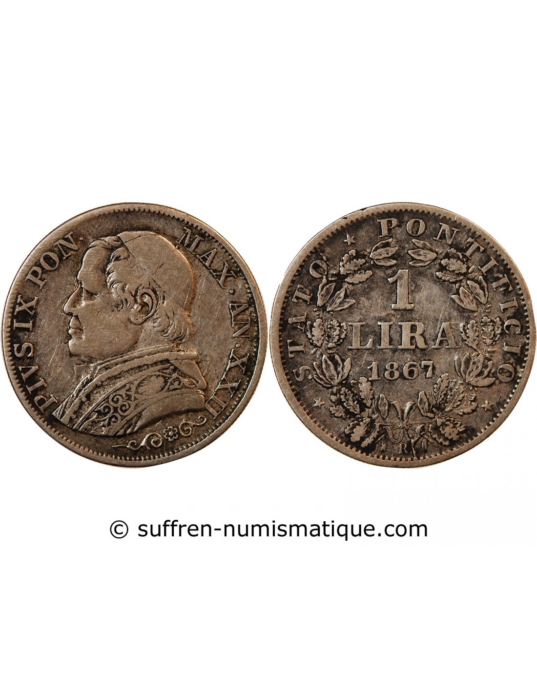 VATICAN, PIE IX - 1 LIRE 1867 ROME AN XXII