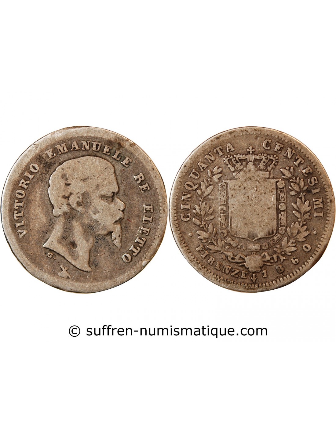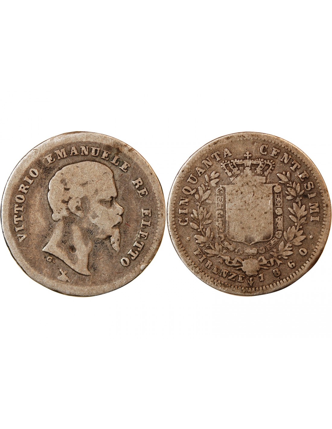 ITALIE, VICTOR EMMANUEL II - 50 CENTESIMI ARGENT 1860 FLORENCE
